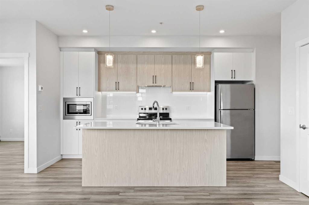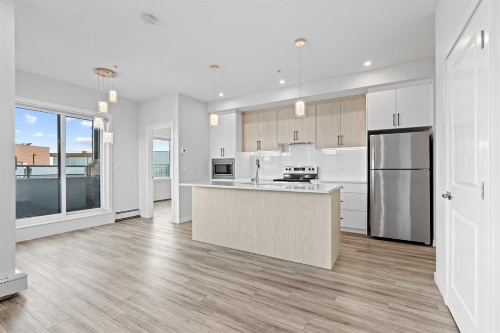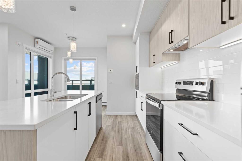 Welcome to this stylish CORNER, AIR CONDITIONED unit in Q Condos at Sage Hill NW, offering the perfect blend of privacy, upgrades, and unbeatable walkability. Although the unit is located on the ground level, it sits elevated and set back from the street, creating a private and secure outdoor space that feels more like a raised terrace than a typical ground floor patio. This bright, modern and clean 2-bedroom, 2-bathroom home features over 800 square feet of open concept living, enhanced by extra windows that fill the space with natural light throughout the day. This unit feels brand new! The thoughtful layout creates great separation between the bedrooms while the 9 ft ceilings add to the spacious, airy feel. The upgraded kitchen is both functional and elegant, showcasing quartz countertops, kitchen cabinets to the ceiling, stainless steel appliances, a slide-in electric range, and pot lights for a clean modern finish. Luxury vinyl plank flooring runs through the main living areas and the home also includes professionally installed window coverings throughout. One of the standout features of this home is the oversized L-shaped balcony with unobstructed views, offering a fantastic space for relaxing or entertaining. Comfort is further enhanced by an air conditioning unit, helping keep the home cool during Calgary’s warmer months. There is also a TITLED heated UNDERGROUND parking spot + TITLED heated underground STORAGE. The location is a major highlight. You are just a one minute walk to Sage Hill Crossing, where you will find everyday conveniences including Co-op grocery store, Shoppers Drug Mart, Canada Post, Tim Hortons, Anytime Fitness, childcare services, Golf Sweet indoor golf, and numerous restaurants and shops. The home also offers quick access to Stoney Trail and Deerfoot Trail, making commuting easy, while downtown Calgary is approximately 20 minutes away. Scenic walking paths, parks, and playgrounds are also close by. Whether you are a first-time buyer, downsizer, or investor, this well-designed condo offers modern comfort, privacy, and a location that is hard to beat in one of NW Calgary’s most convenient and growing communities. Book your showing today and experience everything Sage Hill living has to offer! View our 3D iGuide Virtual Tour!!