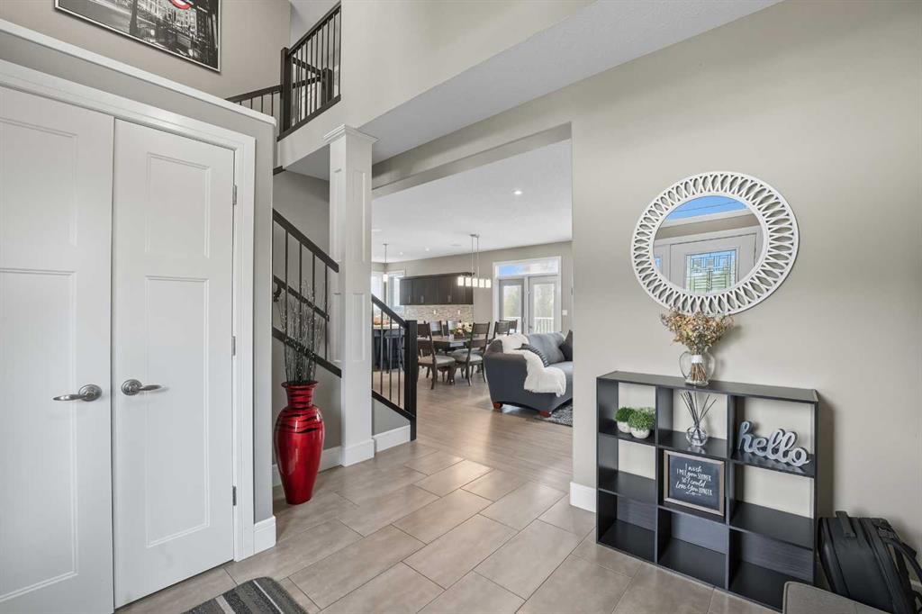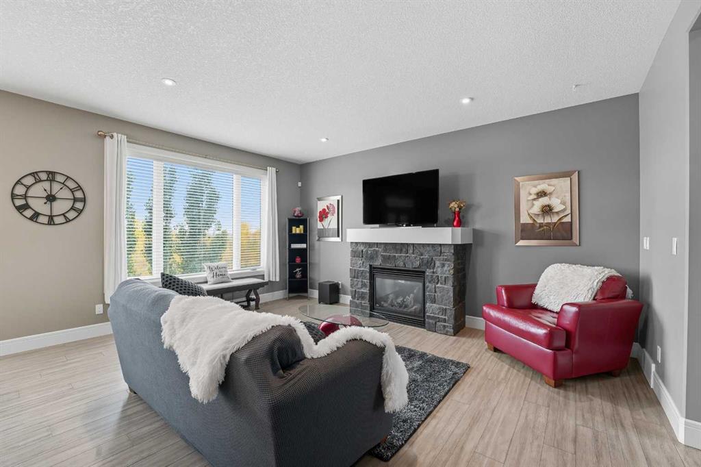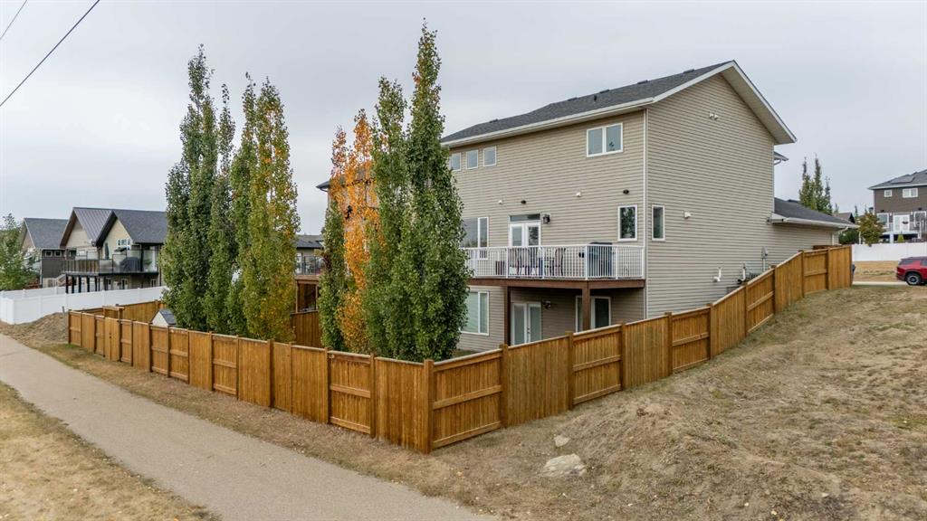 Welcome to 116 Paramount Crescent ~ A beautiful 2 Storey located in the growing Town of Blackfalds with an amazing view boasting over 2000 sqft, a WALKOUT basement and an oversized heated garage. This fantastic family home showcases an extremely functional layout that everyone is sure to love plus Central A/C, H/E furnace, On Demand Hot Water, Central Vacuum, Water Softener & more. The main floor features an open concept design with large windows allowing for an abundance of natural light, a beautiful stone facing gas fireplace in the living room and of course the beautiful oversized kitchen. There is no lack of counter or cabinet space in the kitchen featuring a centre island, full tile backsplash, stainless steel appliance package and a large walk through pantry perfect for those Costco hauls! Off of the heated garage with epoxy floors there is mudroom storage and a 2pc powder room perfect for guests. Upstairs you will discover the spacious bonus room room with vaulted ceilings separate from the three bedrooms and family 4pc bathroom. The primary suite easily accommodates King size furniture and offers a walk-in closet as well as a beautiful ensuite with a double vanity and oversized tile shower with 2 shower heads. Upper floor laundry is an added convenience. The walkout basement is made for entertaining guests with a wet bar & access to the South facing fully fenced and landscaped yard so guests can play games inside & enjoy the Fall evenings on the patio outside! The basement features in-floor heat and is completed by a 4th bedroom and an additional 3pc bathroom. This well maintained 2 storey truly has it all and is a pleasure to view.