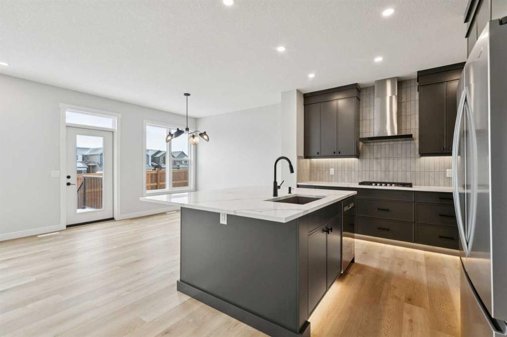 Trico Homes, the heart of home building. Find your ideal home in your favourite community in Calgary & Surrounding Area. The Concord offers 2,305 sq ft of open-concept living, featuring a main-floor bedroom with full bath and a 2-bedroom legal suite for extended family. Upstairs, three secondary bedrooms each include a walk-in closet, along with a shared bath, laundry, and a luxurious primary bedroom with a walk-in closet and 5-piece ensuite. A central bonus room provides space for entertainment and family time. Upgrades include engineered hardwood, 9-ft ceilings, 42-inch upper cabinets, LED pot lights, knockdown ceilings, and modern fixtures. Located in Heartwood, a vibrant southeast Calgary community with tree-lined streets, walking paths, and future parks and amenities. Photos are representative.