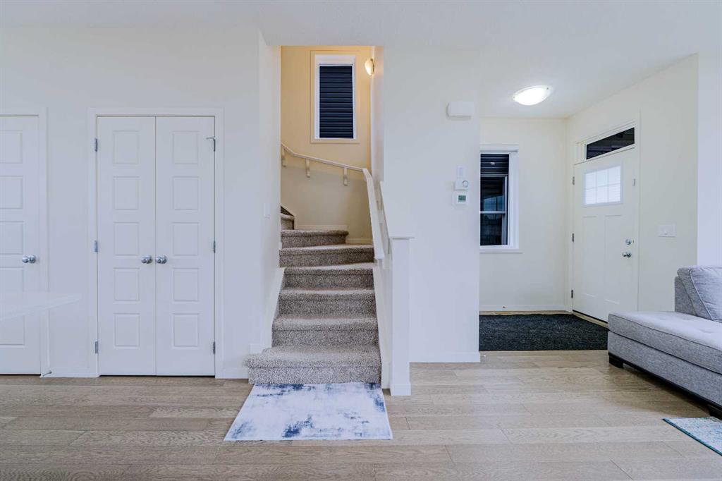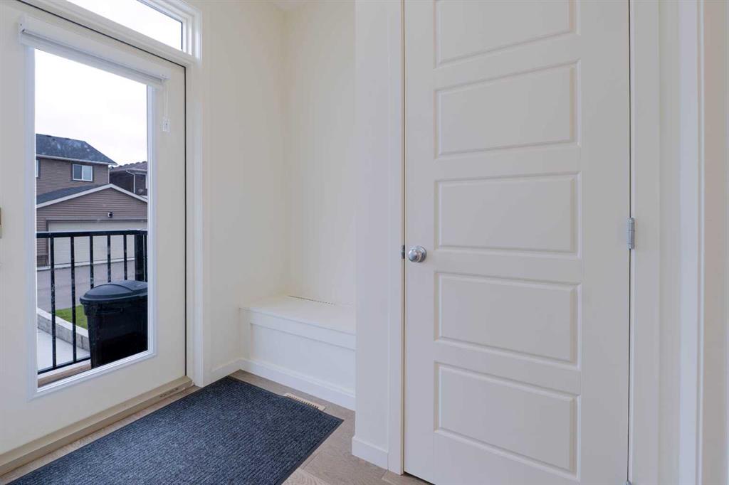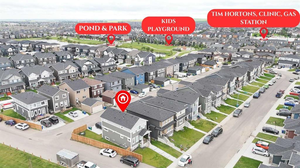 CORNER TRADITIONAL LOT | SEPARATE ENTRANCE TO THE BASEMENT | LOTS OF UPGRADES | PRIME LOCATION | CONVENIENT RV PARKING THROUGH THE ALLEY Welcome to this beautifully designed laned home in the desirable community of Midtown, ideally situated on a rare traditional corner lot next to green area & walking trail with excessive outdoor space at the front, back, and sides—perfect for summer BBQs, family gatherings, or a fun play area for the kids. This beautiful North-facing home offers the perfect orientation for natural light lovers — with abundant sunlight streaming into the backyard from morning to dusk. Step inside to an inviting open-concept main floor with soaring 9-ft ceilings and an abundance of windows that flood the space with natural light, keeping it bright and cozy all day long. The layout offers a spacious front living area that creates a cozy ambiance, a dining space at the back, and a gourmet kitchen at the center—truly the heart of the home. The chef’s kitchen features ceiling-height cabinetry, a large central island with QUARTZ countertops, premium stainless steel appliances, including a gas stove and hood fan, upgraded lighting with pot lights , plenty of storage & spacious pantry provides additional storage to keep everything organized and within reach. A convenient half bath completes the main level, leading out to a rear deck, a generous backyard, and the concrete pad for Double Car Garage. Upstairs, you’ll find three generously sized bedrooms, including a primary retreat with a walk-in closet and private 4-piece ensuite. The two secondary bedrooms are well-sized and share a centrally located full bathroom. All full bathrooms feature upgraded tiles flooring, undermount sinks & timer-controlled exhaust fans. For added convenience, the Whirlpool washer and dryer are also located on the upper level which also features tile flooring. The home also includes a full basement with 9-ft ceilings and a separate side entrance, offering endless potential for future development—whether it’s a legal suite, home gym, or entertainment space. Located in the vibrant, family-friendly Midtown community, this home offers access to beautiful walking paths, parks, a central pond, and is just minutes from schools, shopping, and dining. With quick access to Highway 2, commuting to Calgary is fast and stress-free. This Home Has It All – Space, Style & Location! This is a rare opportunity to own a stylish, move-in ready home on a corner lot in one of Airdrie’s most sought-after neighborhoods. Book your private showing today and fall in love!
