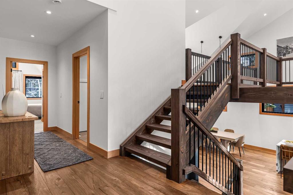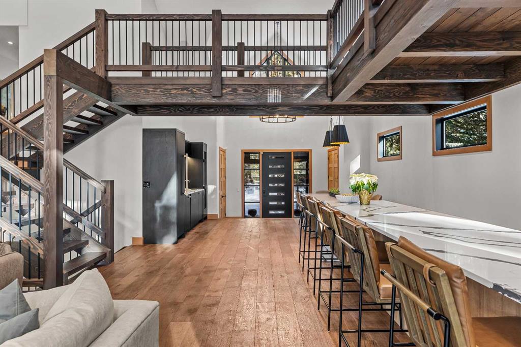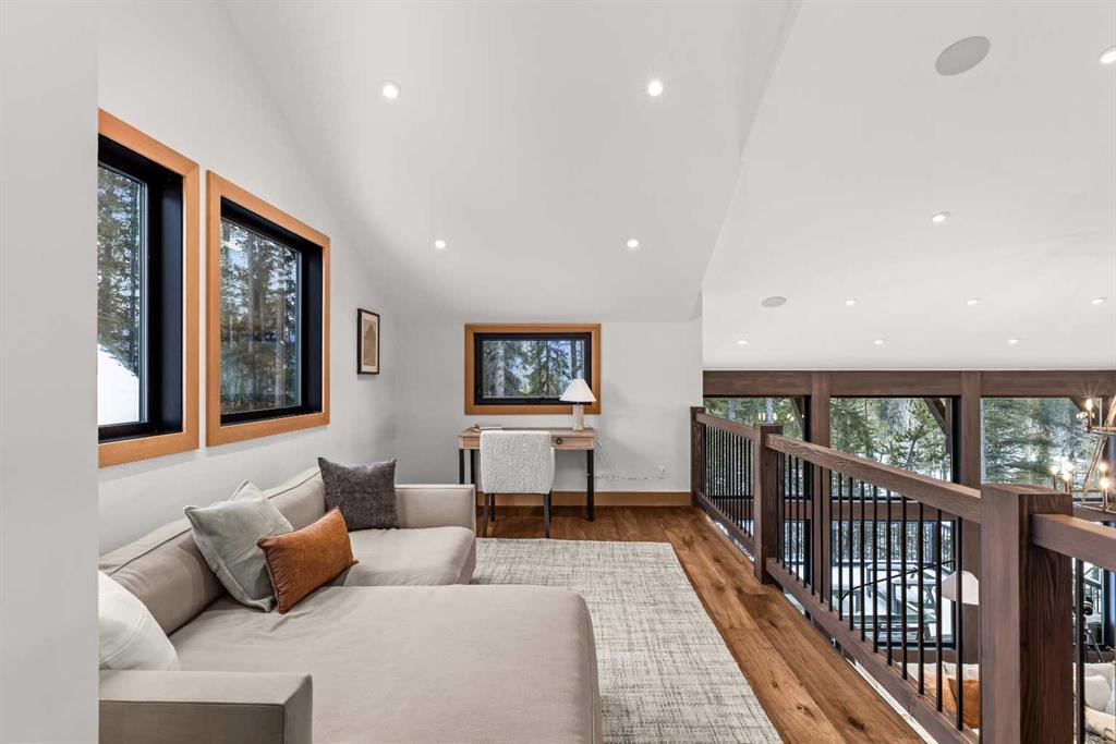Constructed by Kidner Construction, this exceptional Silvertip near new residence blends refined mountain architecture with modern comfort, backing directly onto the 8th hole of the Silvertip Golf Course. Designed for both entertaining and large gatherings, the home features 5 bedrooms sleeping up to 14 guests, 4 bedrooms with private ensuites and a large bunk room with 2 sets of bunks. At the heart of the home, a dramatic timber-frame loft crowns the living space, creating a striking architectural focal point that complements the surrounding mountain setting.Expansive living areas open seamlessly to the outdoors, where a large main deck, two additional decks, and an expansive patio overlook the golf course and surrounding alpine landscape. Inside, the home is finished with triple-pane windows, Control4 whole-home automation, and carefully designed spaces that balance luxury, comfort, and performance.Additional lifestyle spaces include a family room, dedicated gym, and a fully outfitted garage with epoxy floors, providing both functionality and high-end finishing throughout. Offering just under 4,900 SF the home is thoughtfully distributed across multiple levels to provide excellent separation for family and guests. Located in the prestigious Silvertip community, this Kidner-built home combines exceptional craftsmanship with one of Canmore’s most sought-after golf course settings. Surrounded by world-class golf, mountain scenery, and the natural beauty that defines Silvertip, this property offers elevated mountain living in one of the Bow Valley’s most exclusive neighbourhoods.
