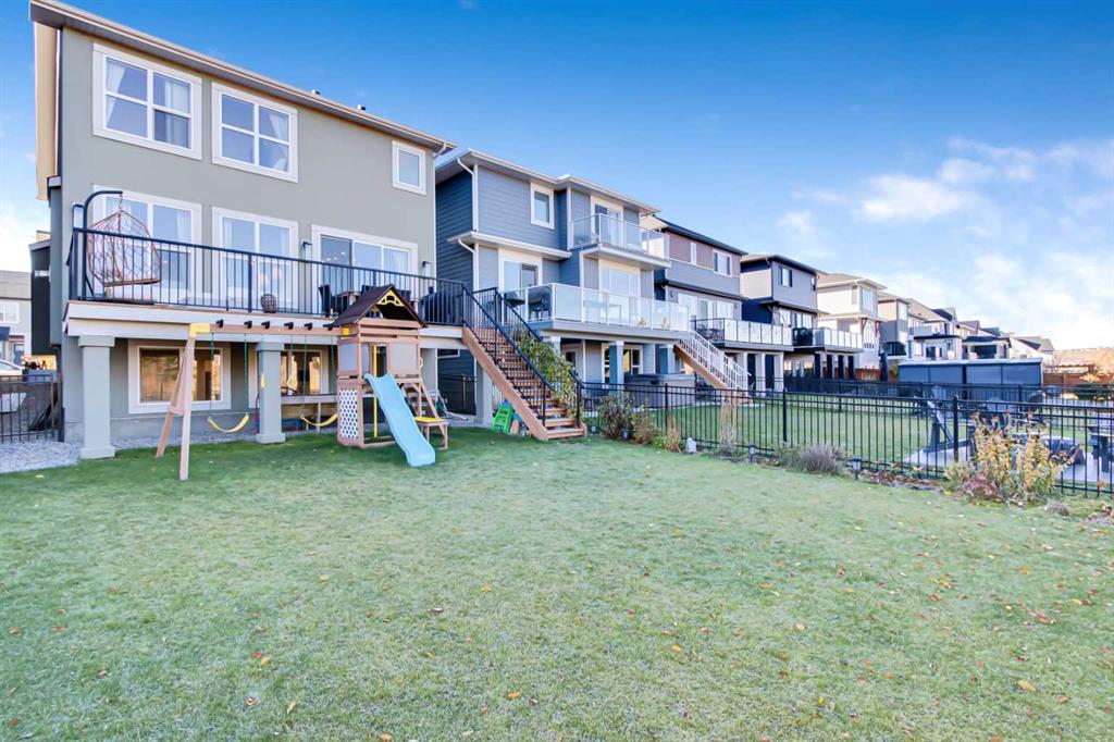 Welcome to this stunning, fully upgraded 4 bedroom, 3.5 bath home in the highly sought after community of Cranston’s Riverstone. Perfectly positioned backing onto green space and just steps from the river, walking paths and the pond, this 2,402 sq.ft home blends luxury finishes with thoughtful design. The main floor offers an elongated entryway leading to an open concept living area flooded with natural light, a beautiful gas fireplace surrounded by custom built ins, a gourmet kitchen with quartz counters and backsplash, upgraded KitchenAid black stainless steel appliances, gas range with pot filler, custom hood fan, farmhouse sink, dining room, large walk in pantry and designer lighting. A custom mudroom with built in lockers adds everyday convenience. Upstairs features three bedrooms and two full baths, including a secondary bath with double vanities - perfect for sharing. The primary bedroom impresses with vaulted ceilings, a spa like ensuite, complete with a freestanding tub, rain shower with marble and zellige style tile, separate vanities and a large walk in closet connected to a convenient laundry room. A spacious vaulted bonus room completes the upper level. Downstairs, the fully finished basement includes a fourth bedroom, office space, full bath, wet bar with quartz counters/sconces and a cozy living area with an electric fireplace - ideal for entertaining. With over 100k in premium upgrades, including heated floors, custom cabinetry, built in speakers, smart lighting and rough ins for A/C and central vac, this home offers modern comfort and timeless style in a beautiful natural setting.