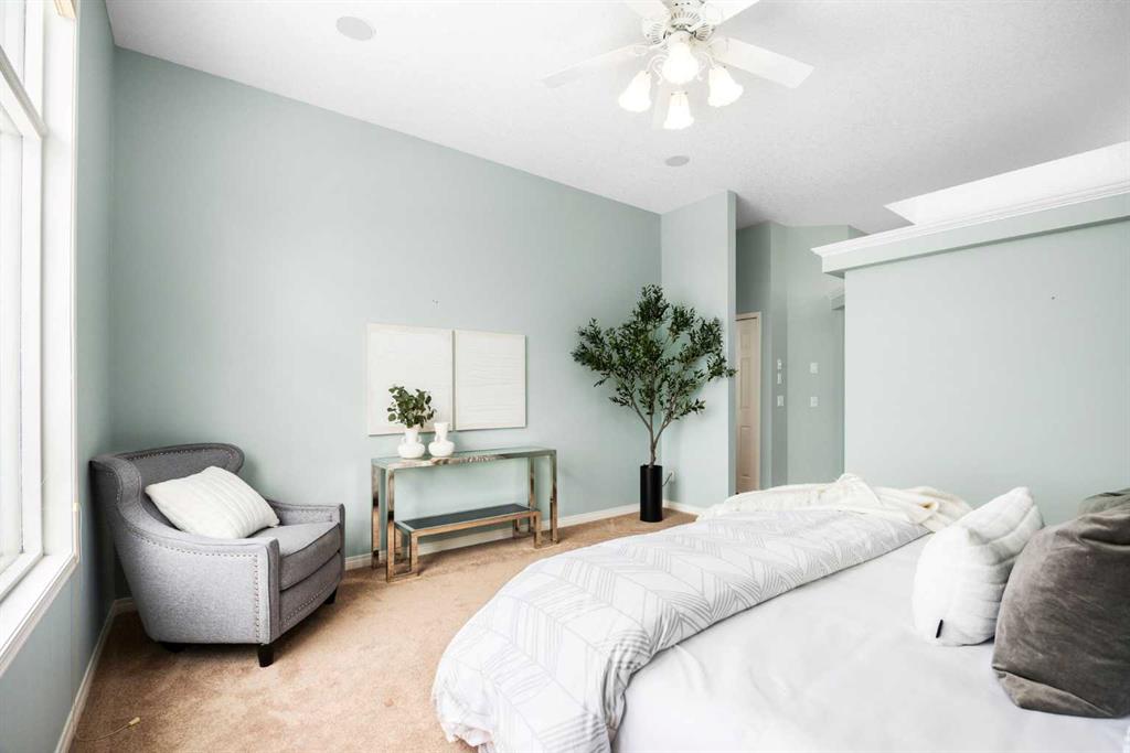 Positioned on one of the most desirable lots in the Villas of Gleneagles, capturing sweeping, unobstructed mountain and golf course views from nearly every room. Elevated above the lush fairways, the setting is both private and spectacular. West facing floor to ceiling windows fill the home with natural light and frame breathtaking sunsets over the Rockies. The bungalow layout offers convenient single level living on the main floor, blending spacious design with everyday comfort. Refinished hardwood floors extend through the kitchen and dining nook, highlighted by a striking island and stainless steel appliances. Updated lighting and fresh neutral paint create a timeless aesthetic, while the dramatic floor to ceiling fireplace anchors the main living space. A formal dining room, dedicated main floor office, and laundry room off the heated garage complete the upper level. The walkout lower level is designed for entertaining and relaxation, featuring a wet bar, large recreation space, second gas fireplace, and two additional bedrooms ideal for guests or hobby space. In floor heat and abundant storage add comfort and practicality. Additional highlights include electric Hunter Douglas blinds on the main floor, in ceiling sound system, Central Air Conditioning, and a heated double garage with epoxy flooring. Enjoy true lock and leave living with snow removal and lawn care included, leaving more time to explore the miles of pathways weaving throughout the community or to enjoy a round at The Links of Gleneagles just outside your back door. A rare opportunity in one of Cochrane’s most sought after villa communities.