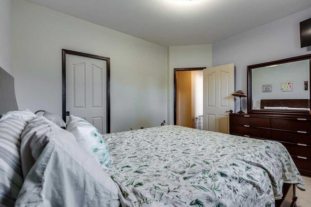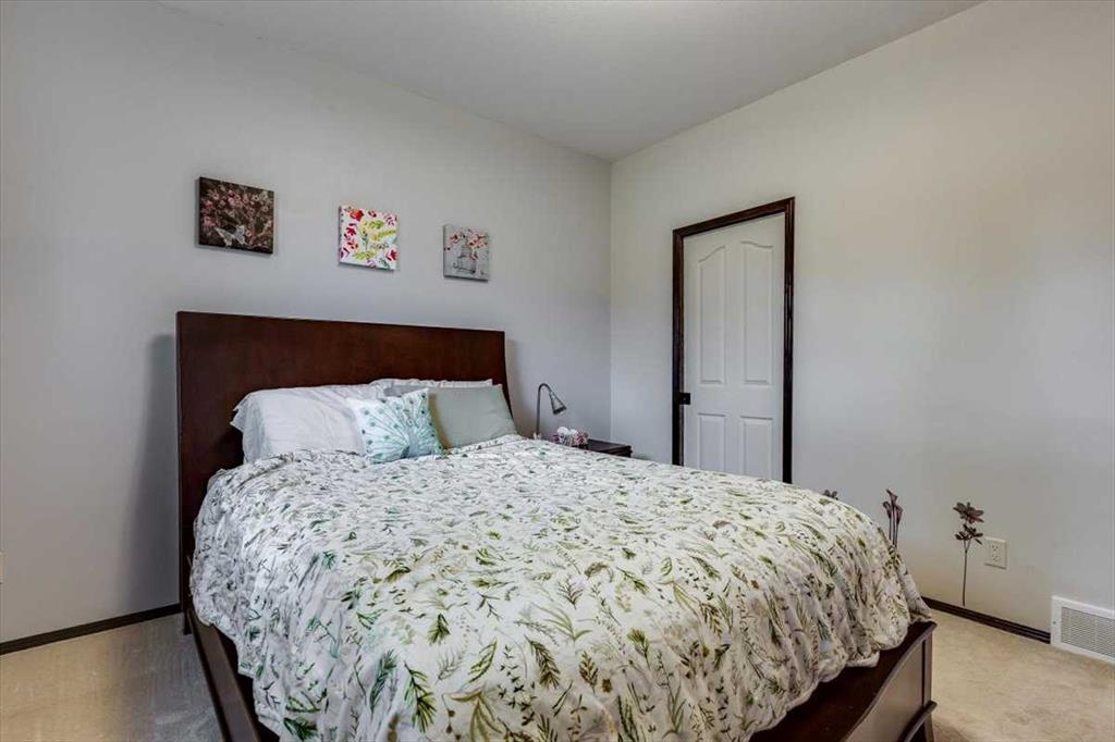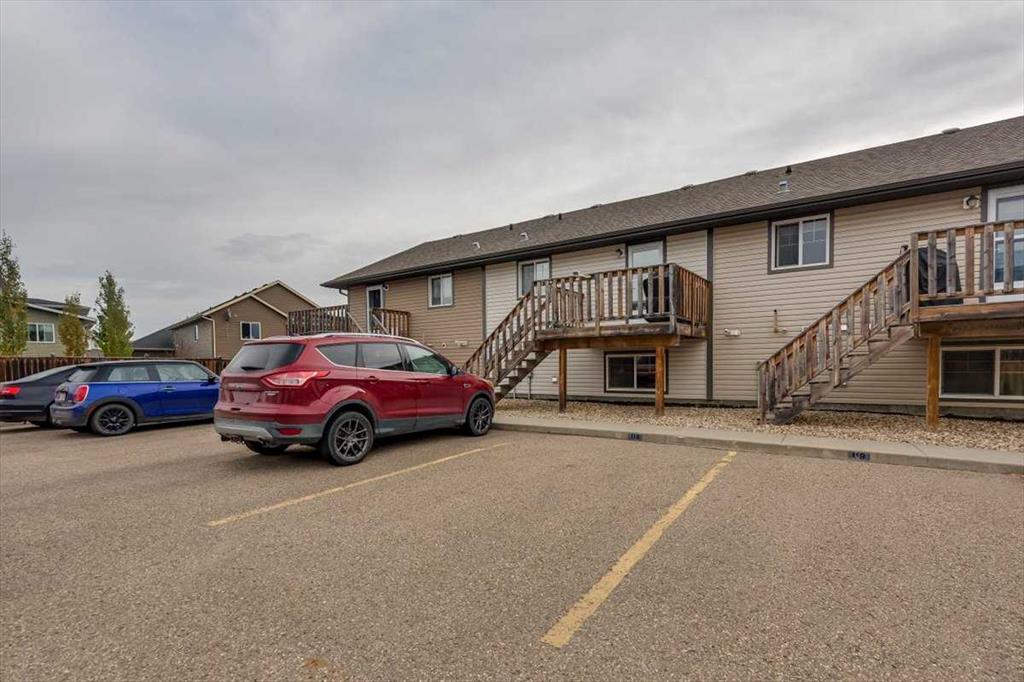 Step into this well-maintained, thoughtfully designed 2-bedroom 2-bathroom Condo. Located minutes from Red Deer in the quiet hamlet of Springbrook, it is a great place to escape the hustle of the city. The main floor features an open-concept living space with large living room windows allowing natural light and recently upgraded flooring. The kitchen offers a smart layout with ample storage, including a pantry and open counter space. The two-piece bathroom on this level allows entertaining to remain on one level. Downstairs, both bedrooms are thoughtfully tucked away for privacy. The primary boasts a walk-in closet, while the second bedroom is spacious enough to allow a queen-sized bed and features a generous closet of its own. The smart floor plan was upgraded to include extra closets. The laundry is conveniently located on this level, close to the bedrooms and four-piece bathroom. The home remains cozy thanks in part to the in-floor heating, which compliments the furnace. The hot water tank was upgraded to a larger size, allowing extra comfort. Outside, enjoy the convenience of two assigned and labeled parking spots at the base of your deck. Shared guest parking is available on a first-come, first-served basis in addition to public street parking. Pet-friendly with board approval of furry friends.