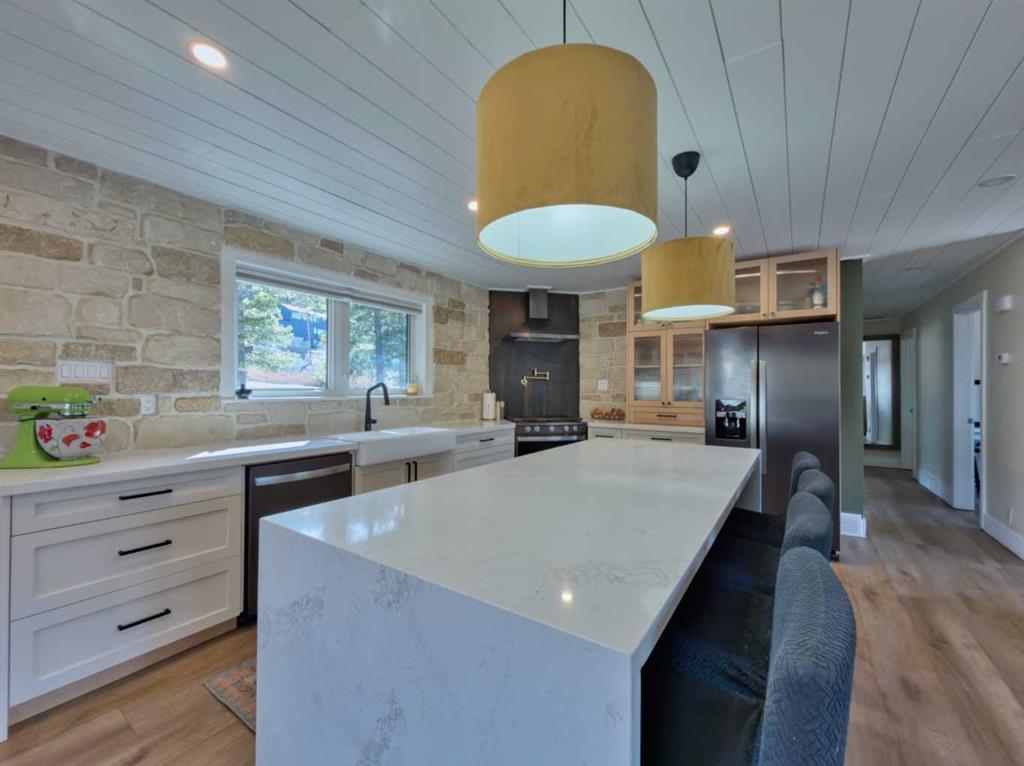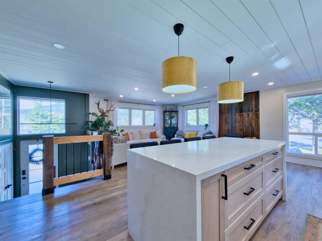 Take advantage of this exceptional location, ideal for family living. This 1,275 sq ft 6-bedroom home sits on a large lot and is complemented by a fully finished and heated 26' x 24' garage, offering plenty of space for vehicles and/or your toys. Recent renovations add both style and comfort, including a beautifully updated kitchen, a stunning custom shower/bath combination in the basement bedroom, and an eye-catching open tread Fir staircase that adds warmth and character to the home. Numerous additional updates inside and out ensure this property is ready to enjoy from day one. The exterior is just as impressive, with thoughtfully placed rock work and manicured lawns that truly shine throughout the summer months, creating an inviting outdoor space for relaxing or entertaining. Located in a highly desirable area close to Pass Powderkeg, trails, local shops, and ISS School, this home offers a fantastic balance of comfort, convenience, and Crowsnest Pass lifestyle.