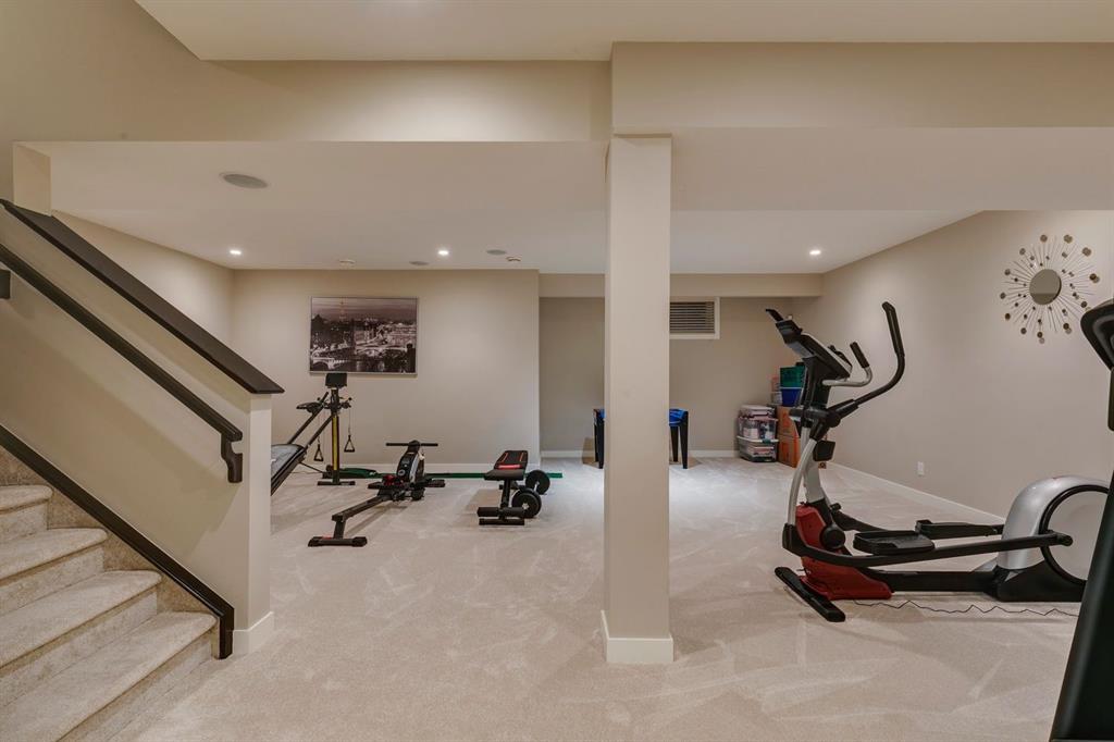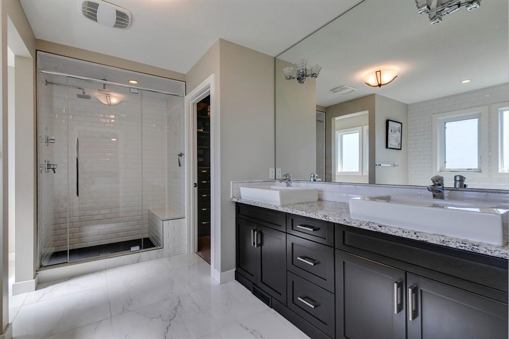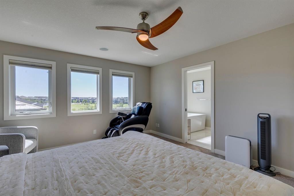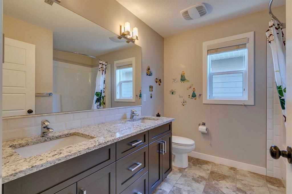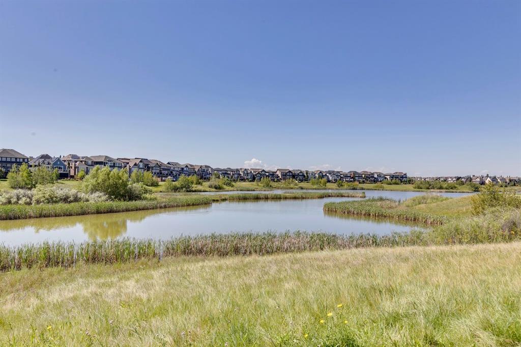 TRANQUIL VIEWS OF THE POND | FULLY DEVELOPED 5 BDRM HOME WITH AN ABUNDANCE OF UPGRADES | NO NEIGHBOURS BEHIND YOU | This gorgeous home is nicely located on a quiet street, featuring a south backyard with no neighbours behind you & has a long list of fabulous upgrades! The main level, bright with an abundance of natural light, welcomes you in to a large foyer with oversized tile flooring & opens to a spacious & inviting floorplan. The gourmet kitchen showcases a ceiling detail bulkhead, full height cabinetry in a rich dark tone that is contrasted with the soft, neutral arabesque custom tile backsplash & elegant granite countertops. The stainless steel appliances include a sleek ceramic cooktop & built-in oven & microwave; there is a central island as well as a peninsula style island making this kitchen not only stunning but also highly functional…plus there is a walk-through pantry! The peninsula island offers an eating bar & overlooks the large dining area that opens to the sunny backyard. Finished with beautiful hand-scraped hardwood flooring throughout the living & dining areas, while the living room features a stylish gas fireplace with raised hearth…this space is warm & inviting, creating a perfect atmosphere for quiet family time or entertaining guests, offering views of green belt & pond! Completing this main level is a private den with sliding pocket doors. Upstairs is sure to please as well…there is a generous sized bonus room with built-in dry bar with beverage fridge; the sliding barn door creates an ideal separation for the “kid’s area” where you will find 3 bedrooms, separated by a 5pc bathroom with dual sinks, as well as a built-in homework station! The Master bedroom, located at the rear of the home, offers fantastic views of the pond & has a lovely spa-like ensuite…freestanding bathtub with a modern full height subway tile feature wall, dual vessel sinks, & custom tiled shower with 10mm glass…plus a walk-in closet with custom built-in organizers! You will enjoy the convenience of the upper laundry room with expansive counter space & lower cabinets! The lower level, professionally finished, is host to a huge open family/rec room, 5th bedroom & full bathroom. This home is also wired with in-ceiling speakers on all 3 levels, central A/C…plus it is pet-free & smoke-free! The south backyard can become your private oasis…fully fenced & landscaped with a full-width skirted deck…and no neighbours behind! Enjoy this amazing home in a desirable 4 season community that offers great access, endless shops, restaurants & services…plus nearby community schools!