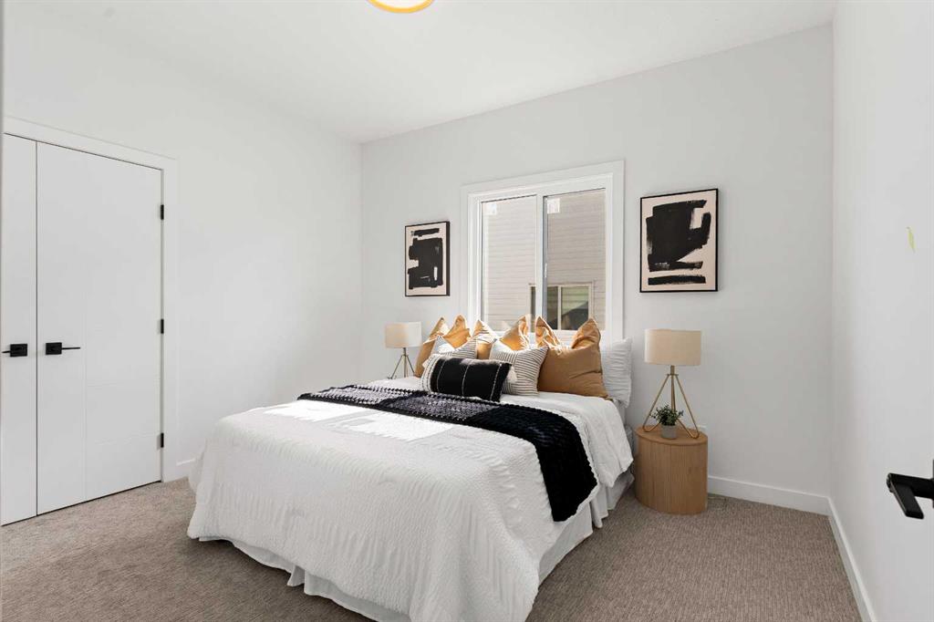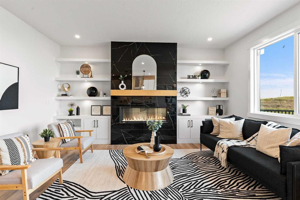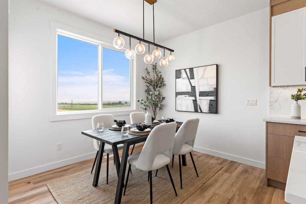 Welcome to an extraordinary opportunity to own a custom-designed Exquisite Home on a 6,360 sqft corner lot in Crossfield. This stunning upgraded two-story home offers 2,211 sqft of carefully crafted living space, an 873 sqft undeveloped walk-out basement, and a triple-car garage, totaling over 3,000 sqft. From the moment you step in, you’ll notice the attention to detail, with soaring 9-foot ceilings on each floor, adding a sense of space and light. Enjoy the front porch, perfect for morning coffee, and the spacious deck off the main floor, ideal for family gatherings and summer barbecues. The open-concept main floor is designed for comfort and modern elegance, centered around a chef’s dream kitchen with a sizable island, sleek quartz countertops, premium stainless-steel appliances, and textured cabinets crafted from durable plywood. Adjacent to the kitchen, a walk-in pantry and breakfast nook add charm and functionality. The sunlit living room offers relaxation with a linear gas Montigo fireplace and, wide plank luxury vinyl plank flooring, (Full feature sheet can be provided upon request). Bold black dual-pane windows frame serene views, adding sophistication alongside our durable stucco exterior with stone accents. This floor also includes a large office, mudroom, and side entrance, enhancing convenience for daily living. Upstairs, the primary suite is a luxurious retreat with tray ceilings, a stunning 5-piece ensuite (dual vanities, soaker tub, and separate shower), and a spacious walk-in closet. Two additional bedrooms, each with its own walk-in closet, provide ample room for family or guests, along with a full 4-piece bathroom. A convenient laundry room with a sink simplifies routines, and a versatile bonus room offers space for a playroom, home theater, or lounge. The lower level, accessible by a separate rear entrance, opens to a walk-out basement with a concrete pad beneath the main-floor deck. The undeveloped basement is perfect for transformation into a rec area or a potential revenue-generating secondary suite (subject to approval and permitting by the city/municipality). Set in the welcoming Iron Landing community, this home is close to parks, playgrounds, and top-rated schools like Crossfield Elementary and W.G. Murdoch School. Enjoy the peaceful charm of Crossfield, with Airdrie just 10 minutes away, Calgary 25 minutes, and easy access to Highway 2. Scheduled for completion in August 2025, this home offers the chance to choose from bespoke finishes, making it a true reflection of your style. Photos shown are from our show home in Iron Landing. Don’t miss this exceptional property—contact us today to make it yours!