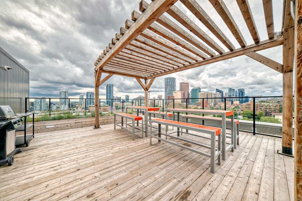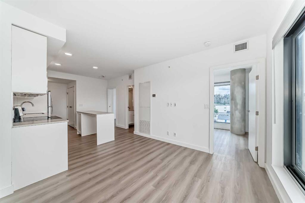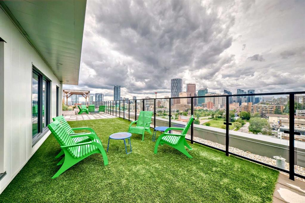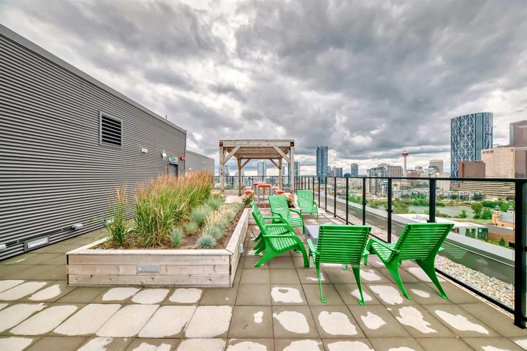 CORNER UNIT 12TH FLOOR. GREAT VIEW! Welcome to Era by Minto Communities—modern, elevated living in this well-designed 2 bedroom, 1 bathroom unit in the heart of Bridgeland. Perched on the 12th floor, this home offers unobstructed views and abundant natural light, all within one of Calgary’s most walkable neighborhoods (Walk Score of 98). You’re just steps from Bridgeland Market, Shiki Menya, Luke’s, local cafés, parks, playgrounds, and the Bow River pathway system. The Bridgeland/Memorial LRT station is nearby for quick access to downtown and the East Village. Inside, the open-concept layout seamlessly connects the kitchen and living area to a private balcony—perfect for morning coffee or evening relaxation with a view. The kitchen features a large eat-in island, quartz countertops, stainless steel appliances, and full-height cabinetry. Durable vinyl plank flooring, air conditioning, in-suite laundry, a titled underground parking stall, and a titled storage locker add everyday comfort and convenience. Built to LEED Gold standards, Era emphasizes energy efficiency and smart living, offering features like video entry, facial recognition access, secure package lockers, community messaging, and virtual concierge services. Residents also enjoy a rooftop patio with firepits and BBQs, offering stunning downtown views, along with an indoor lounge and workspace for year-round use. This well-appointed unit in a professionally managed building is an excellent opportunity to own in one of Calgary’s most desirable inner-city communities. Book your showing today. Photos are from a similar unit with an identical floorplan and may not reflect the exact finishes or views of Unit 1202. Some photos are virtually staged.