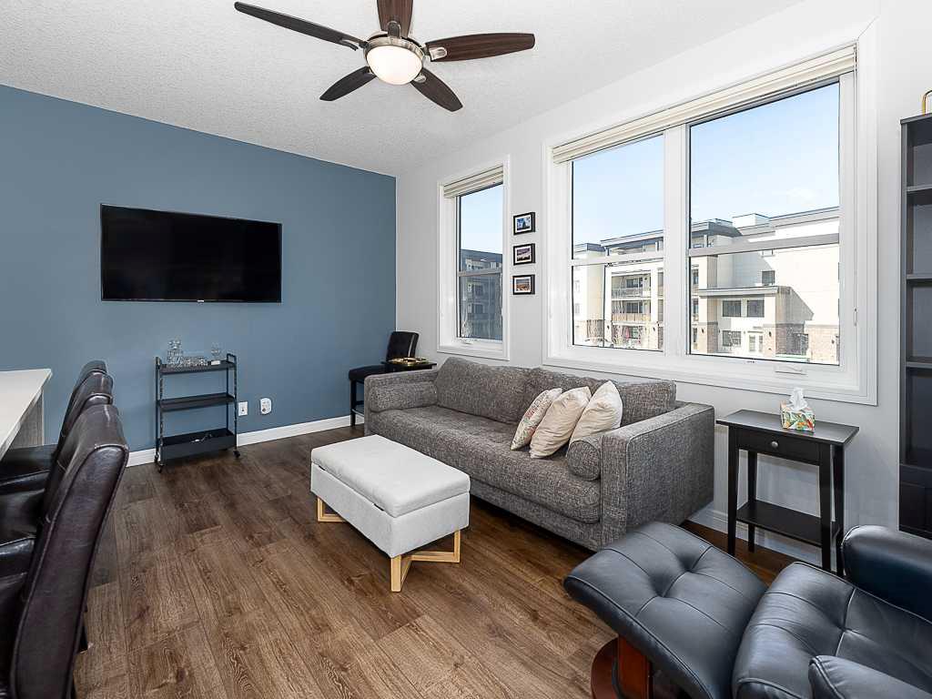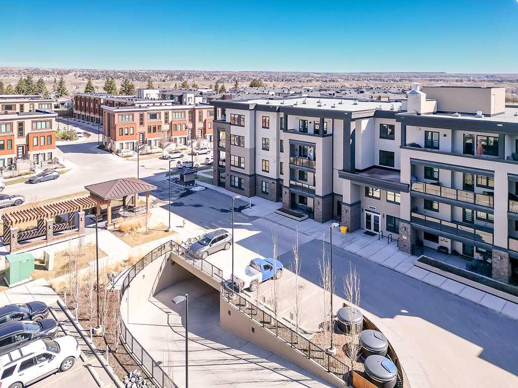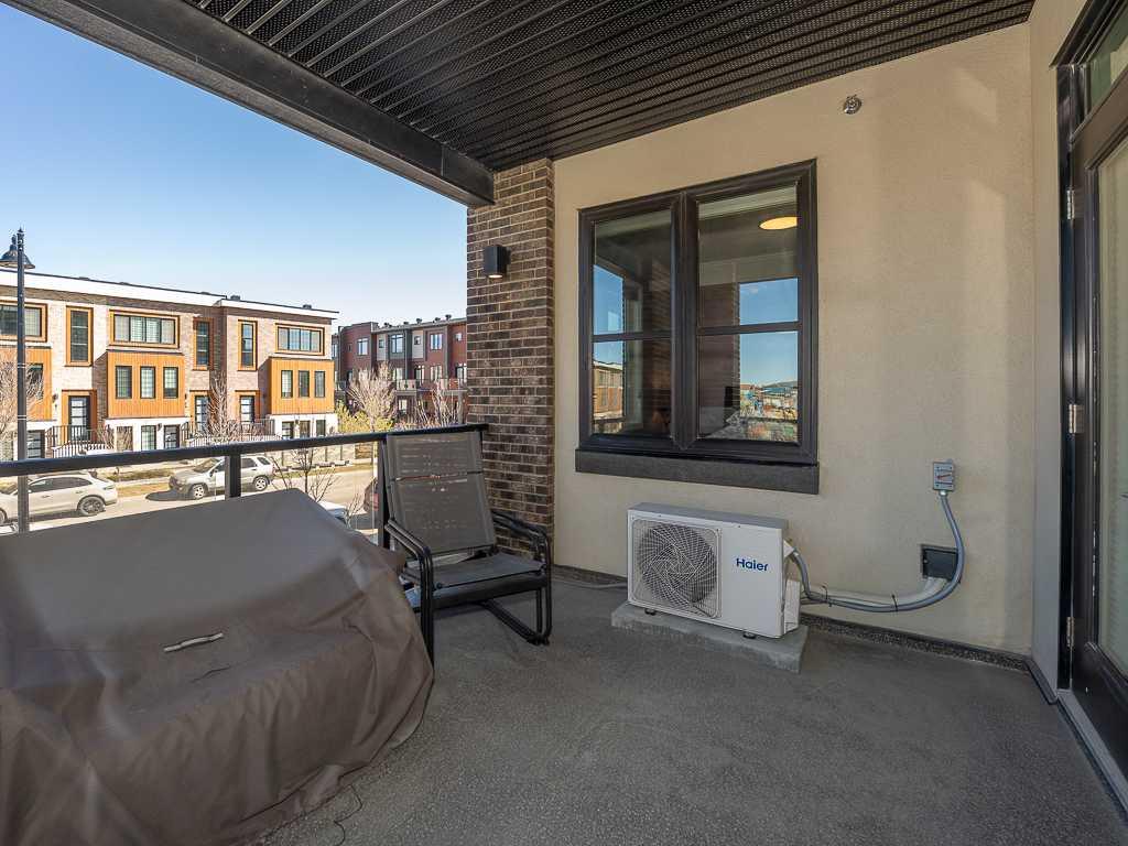 This beautiful unit is being offered in the vibrant and growing community of Greenwood/Greenbriar, this elegant 2-bedroom, 2-bathroom condo offers a refined blend of modern design and everyday comfort. The thoughtfully curated interior showcases an open-concept layout anchored by sleek quartz countertops, stainless steel appliances, and a stylish breakfast bar—perfect for both casual mornings and effortless entertaining. Designed with convenience in mind, the home features in-suite laundry, air conditioning for year-round comfort, and a generous private balcony that extends your living space outdoors. The spacious primary retreat includes its own ensuite, while the second bedroom and full bathroom provide versatility for guests, a home office, or additional living space. Completing the offering are titled parking and a dedicated storage unit, ensuring both ease and practicality. Perfectly positioned close to schools, shopping, and everyday amenities, this exceptional home also places you moments from Farmers’ Market West and Canada Olympic Park, where year-round recreation and local experiences await. An elevated opportunity in a dynamic location—ideal for those seeking style, convenience, and a connected lifestyle.