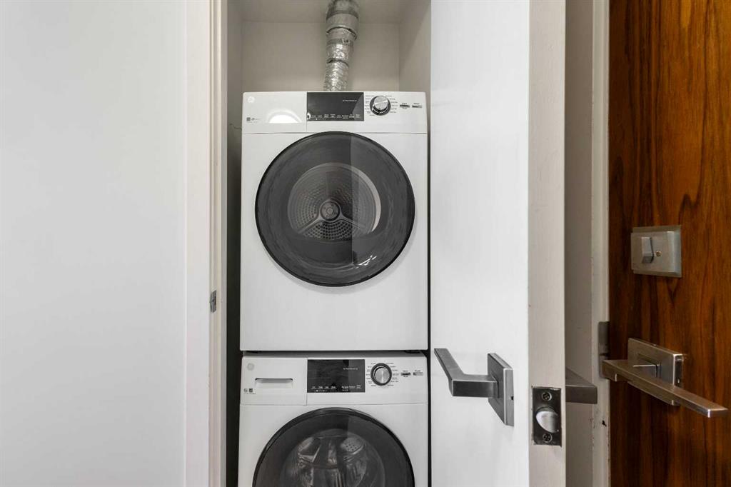 Luxury living in downtown Calgary! One of the Best Locations in the city! This modern one bedroom apartment in the Outlook at Waterfront, on the 12th floor and facing West! With great views of the city, Bow River and Rocky Mountains! Only steps away from the extremely popular Prince Island Park, and the future Green Line C-train Station. Great restaurants and coffee shops nearby! Building is full of amenities, such as Meeting Rooms, Party Room, Gym, Bike storage, Lockers, and a beautiful Court Yard! Friendly full-time concierge staff always ready to help. Brand new Washer, Dryer and Microwave. Perfect for someone looking for stress free downtown living, or a great investment!