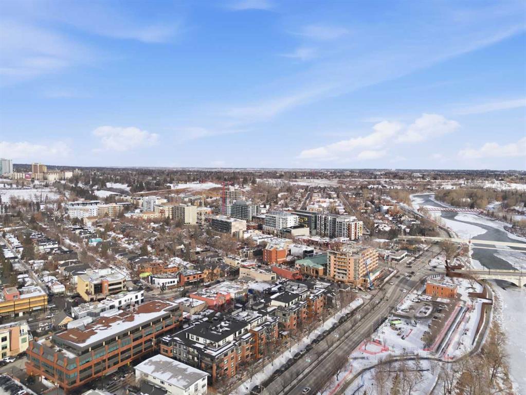 Welcome to Downtown's Westend! Enjoy abundant natural light through floor-to-ceiling, south-facing windows that brighten the entire unit. The primary bedroom features a well-appointed ensuite with a soaker tub, separate shower, and heated floors—also found in the second bathroom. You will appreciate the generous storage offered by two primary closets, including one walk-in. The open-concept living space showcases pristine Berber carpet and a versatile open den, ideal for a home office or reading area. The kitchen overlooks the dining space and is equipped with granite countertops, ample cabinetry, and sufficient room for two to work comfortably. A spare bedroom provides a welcoming option for guests, with convenient access to visitor parking. Additional features include one titled parking stall, party room, fitness centre, hot tub, and an exceptional location just one block from the C-Train, steps to Prince’s Island Park, and within walking distance to Kensington and downtown amenities. This is an excellent opportunity to live in a well-maintained building. Contact us today to book your private showing.