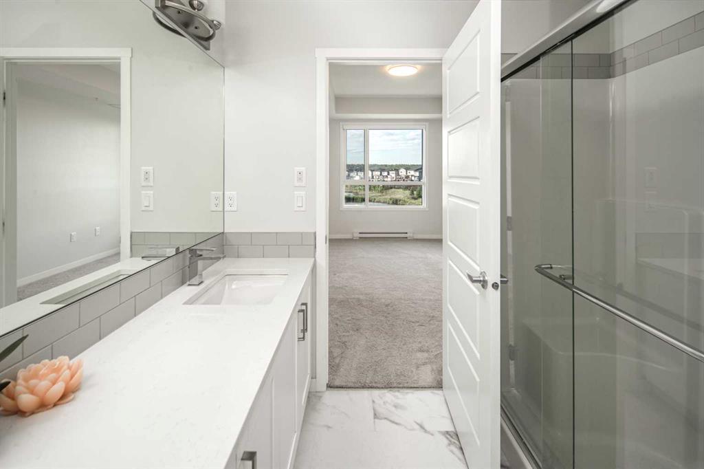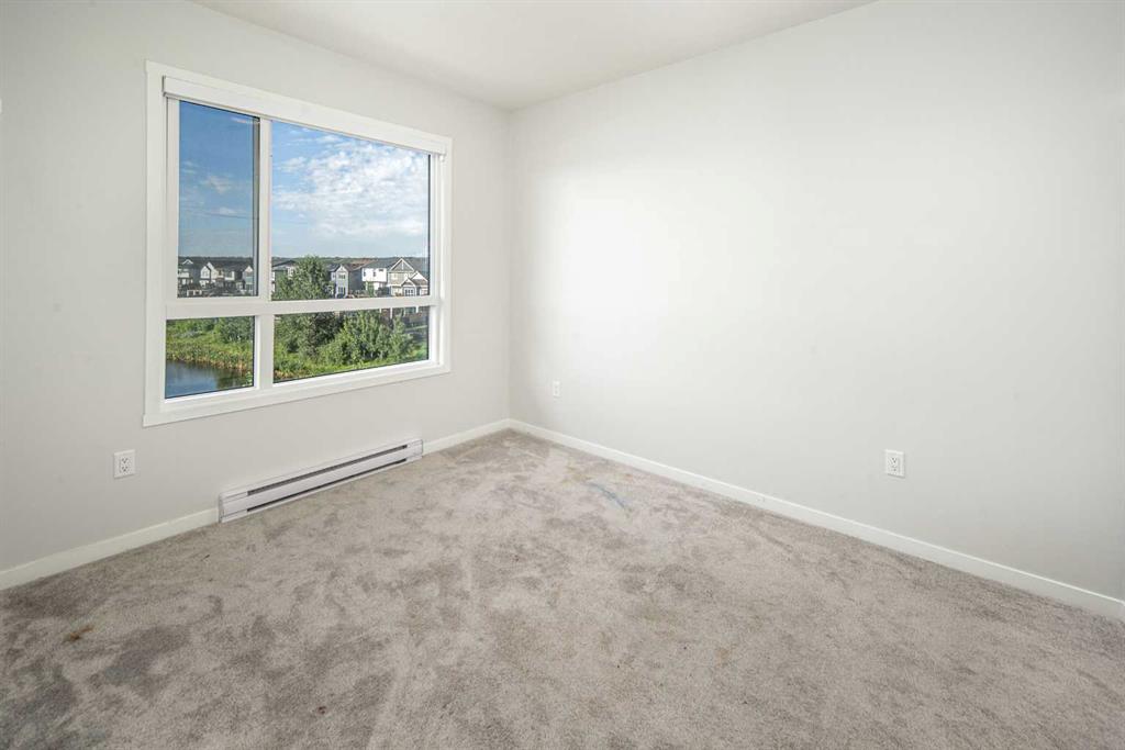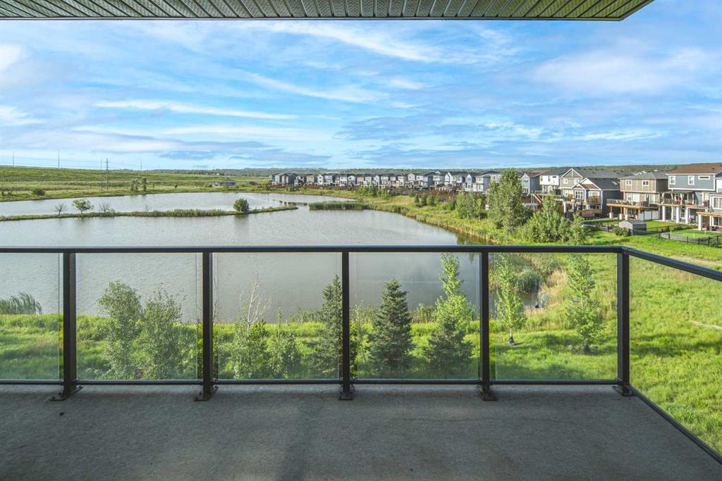 Welcome to Riverstone Manor! Located in the highly sought after southeast community of Riverstone in Cranston. BUILT BY “BUILDER OF CHOICE” WINNER CEDARGLEN LIVING! This unit offers luxury living right at your fingertips! This stunning southwest facing unit features 3 beds, 2 baths, and over 1,188 SqFt of living space. It also comes a titled underground parking stall and building bike storage! open plan, 9' ceilings, Low E triple glazed windows, electric baseboard heating, BBQ gas line on the balcony, Fresh Air System (ERV) and so much more. Super sunny SOUTH UNIT, with UNOBSTRUCTED Views of the Scenic Wet Pond on the balcony. The kitchen is spectacular with full height cabinets, quartz counters, pots/pan drawers, undermount sink, upgraded backsplash and S/S appliances. The island is extensive which transitions into the spacious living area and large dining room, perfect for entertaining. The spacious primary bedroom has a large window (triple pane windows), sizeable walk-in closet and dual vanities with a stand-up shower. The additional bedrooms are perfect for kids, guests, or an office. Nearby is the laundry/storage room (washer & dryer included) and a 4pc bath with quartz counters and undermount sink. Highlights include: Hardie board siding, electric baseboard heating, BBQ gas line on the balcony. Strategically located steps from the beautiful Bow River, adjacent to the scenic wet pond, access to Cranston’s Resident’s Association and many other bespoke amenities. PET FRIENDLY COMPLEX!