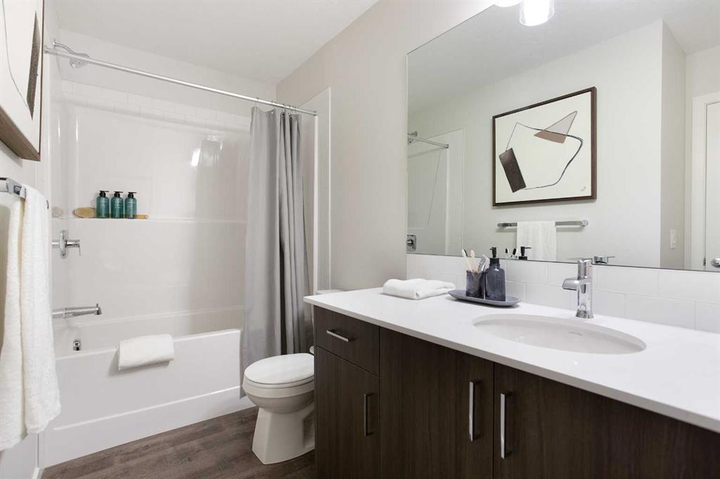 Welcome to this beautifully appointed 4-bedroom townhome in the heart of Rangeview, offering over 1,700 sq. ft. of stylish, functional living space designed for both connection and comfort. With an attached double garage, a modern open-concept layout, and unmatched access to natural spaces and urban conveniences, this home truly has it all. Facing a lush courtyard garden and green space, the residence offers a peaceful outlook and a strong sense of community from the moment you arrive. Inside, light finishes, clean lines, and thoughtful design create a bright and inviting atmosphere. Soaring 9' ceilings on the main floor and 8' ceilings upstairs enhance the open feel, while large windows welcome natural light throughout. The main living space is finished with luxury vinyl plank flooring across the kitchen, dining, and living areas, bathrooms, and laundry. The kitchen features sleek slab-profile cabinets, crisp white quartz countertops, and an eating bar perfect for casual meals or entertaining. A dedicated dining space and an upper balcony off the living room add even more room to enjoy life at home. With 3 spacious bedrooms upstairs and 1 on the main floor to ensure there’s room for everyone—whether for family, guests, or a home office. Plush carpet with an 8lb underlay brings comfort to the bedrooms and hallways, while the primary suite offers a relaxing retreat. Bathrooms feature quartz counters, chrome fixtures, high-efficiency toilets, and modern tile backsplash for a clean, timeless look. Practical features include a two-car garage and a full-sized washer/dryer conveniently located on the upper level. Life in Rangeview is all about community and connection. Stroll the scenic pathways, visit the community greenhouse and gardens, or relax in the shared courtyards and playgrounds. Quick access to Deerfoot and Stoney Trail, shopping in Mahogany and Seton, and the South Health Campus nearby makes every day effortless. This 4-bedroom townhome is a rare find—offering a perfect blend of space, style, and lifestyle. Welcome to your new beginning in Rangeview.