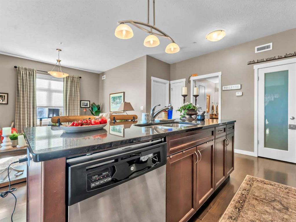 #121 19 Terrace View NE – Modern Corner Condo with River Valley Views. Enjoy easy living in this bright and spacious 2-bedroom, 2-bathroom corner unit condo with beautiful views overlooking the river valley. This well-cared-for home has a comfortable open layout that feels both modern and welcoming. The kitchen is stylish and functional, featuring granite countertops, stainless steel appliances, and a large island that’s perfect for hosting guests or enjoying a casual meal. The space flows into the dining area and open living room, where large windows fill the home with natural light. Step out onto your private covered deck—an ideal spot for morning coffee, evening relaxation, or summer barbecues. The primary bedroom offers great storage with a walk-through closet leading to a private 3-piece ensuite. A second bedroom and full 4-piece bathroom provide flexibility for guests, a home office, or hobbies. Convenient in-suite laundry and an underground parking stall add to the appeal. This pet-friendly building (with some restrictions) has no age limit and offers true worry-free living—condo fees cover all utilities and maintenance, including heat, water, electricity, and more. Condo Fees: $457/month Include: Common Area Upkeep, Electricity, Heat, Grounds Maintenance, Parking, Reserve Fund, Sewer, Snow Removal, Trash & Water. A wonderful opportunity to enjoy comfort, convenience, and stunning views—all in one great location.