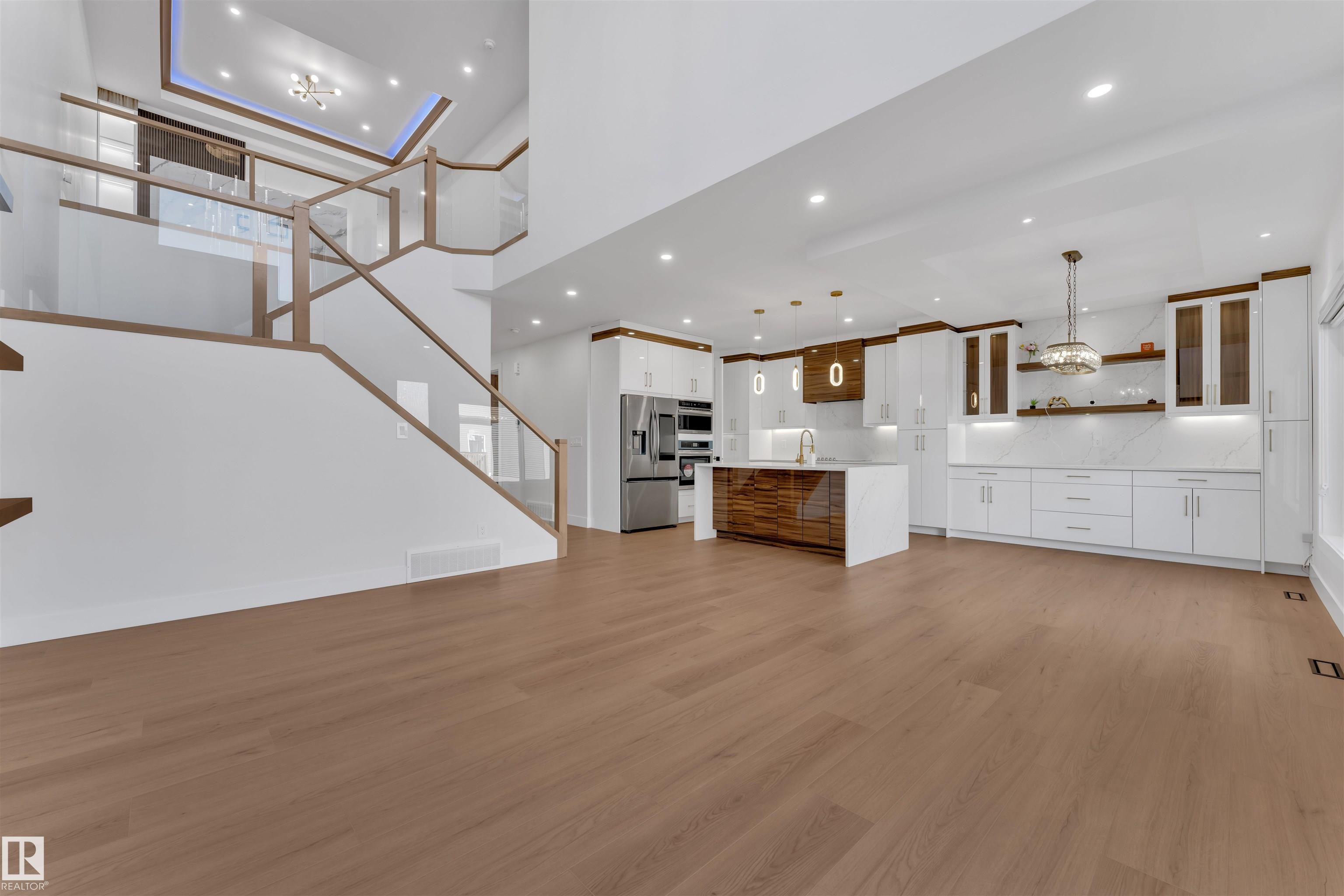 Stunning Fully Custom Home with Legal Secondary Suite Basement. Welcome to this fully custom home located in a quiet cul-de-sac, just steps away from the park. Designed for modern living, it features a double over size car garage, elegant double door entry, and a functional mud room. The main floor offers a bedroom with full bath, a spacious extended kitchen with dining nook, and a convenient spice kitchen. The impressive open-to-below living area fills the home with natural light, creating a bright and inviting space. Upstairs, enjoy a versatile bonus room, a luxurious primary suite with 5-pc ensuite and walk-in closet, plus 2 bedrooms with Jack & Jill bath, an additional bedroom with full bath, and a laundry room for convenience. The finished basement offers incredible value with 2 bedrooms, a full kitchen, living area, and separate entrance — perfect for extended family or rental potential. Close to parks, schools, and amenities, this home truly has it all!