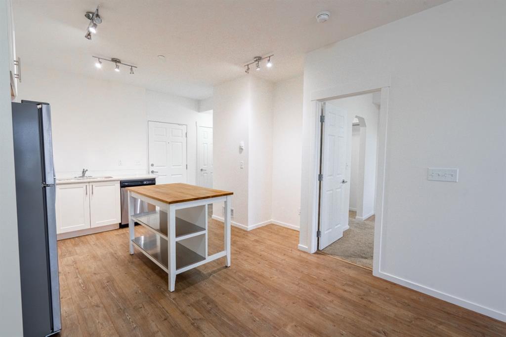 Welcome to one of the largest one-bedroom homes in Legacy Park — a rare chance to secure space, comfort, and long-term value in a growing community. Freshly painted and move-in ready, this second-floor condo offers the perfect mix of modern finishings and a layout designed to fit your life today and grow with you tomorrow. Step inside and feel the openness of the bright, north-facing plan. The consistent natural light brings calm and energy throughout the day — the kind of light psychologists say makes a home feel more uplifting and welcoming. The sleek kitchen features timeless white cabinetry, quartz counters, stainless steel appliances, and a floating island that creates flexibility for cooking, dining, or entertaining. The living and dining area flows seamlessly to a private covered balcony — a quiet retreat for morning coffee, an evening glass of wine, or simply unwinding outdoors. The bedroom is generously sized, with a custom walk-through closet leading to a clean, modern bathroom with cheater access for added privacy. Every detail feels intentional and connected. Practical touches — like in-suite laundry, a titled underground parking stall, and secure storage — make daily life easier, while affordable condo fees ($368.38/month) keep ownership stress-free. Built by Brad Remington Homes, Legacy Park is known for quality and durability — from Hardie board siding to high-efficiency SunStop windows and engineered wall and floor systems. This isn’t just a home that looks good today; it’s one designed to last. Set in the heart of Legacy, you’re surrounded by pathways, parks, and ponds, with Township Shopping Centre just minutes away — groceries, dining, coffee, and fitness all at your doorstep. This is more than a condo. It’s a foundation for your next chapter — a move-in ready home that gives you space, stability, and the freedom to make it your own.