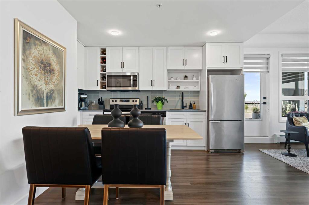 THE “2” GOOD TO BE TRUE DEAL — $349,900 Sunny south-facing balcony views, immediate possession, and two titled parking stalls make this upgraded two-bedroom, two-bath second-floor home an absolute standout in the highly sought-after community of Livingston. Located in the popular Maverick building, this bright and beautifully maintained unit offers exceptional value and modern comfort in one of north Calgary’s most vibrant neighbourhoods. With 855 RMS square feet of well-designed living space, the open-concept layout feels both spacious and inviting. The upgraded shaker-style white maple kitchen features tall upper cabinets, generous counter space, a pantry with extra storage and freezer space, full-height tile backsplash, dual-basin stainless steel sink, and a pull-out faucet. The kitchen flows seamlessly into the dining and living areas, perfect for everyday living or entertaining. Modern white-painted casings, doors, and baseboards add a crisp finish throughout, while convenient in-suite laundry with a stacked washer and dryer offers additional storage. Step outside to the impressive 26.5' x 6.1' glass-railed balcony and enjoy sunny south exposure—ideal for morning coffee or evening relaxation. Rarely do you find two titled parking stalls included at this price point, adding tremendous value and flexibility. Living here means enjoying full access to the Livingston Hub and community amenities, including a banquet hall, splash park, skating rink, tennis and badminton courts, and gym facilities. Everything you need is within walking distance, from dining and shopping to everyday essentials. With quick access to Country Hills Boulevard, Stoney Trail, and Deerfoot Trail, commuting is simple and convenient. The complex is pet-friendly with board approval, making it a perfect fit for a variety of lifestyles. Move in now and start enjoying the unmatched community experience Livingston is known for. This one checks all the boxes for location, lifestyle, and value. Call your friendly REALTOR® today to book your private viewing.
