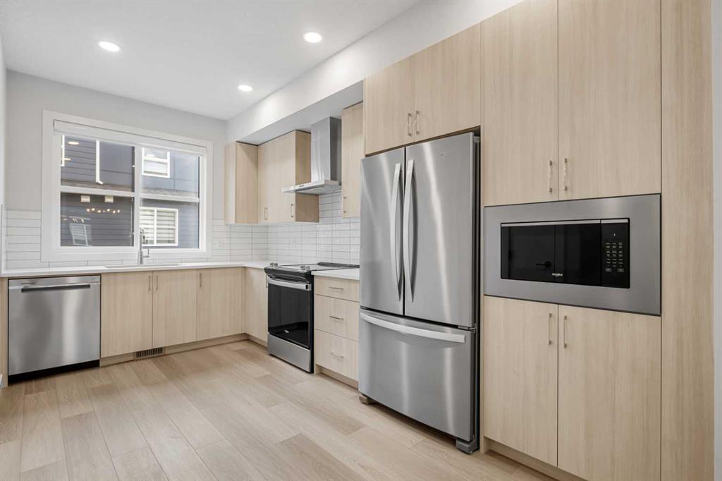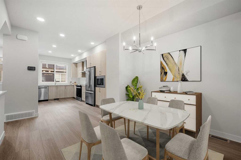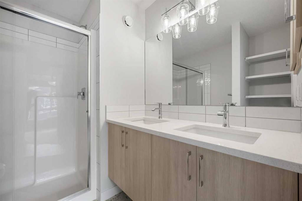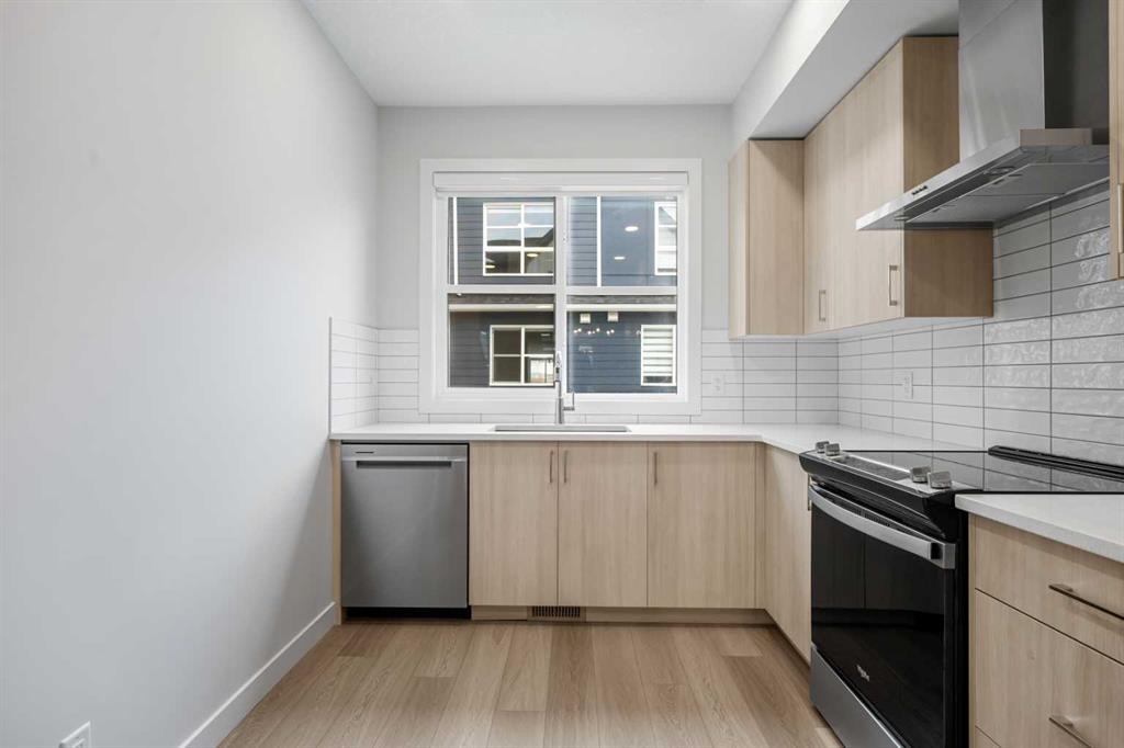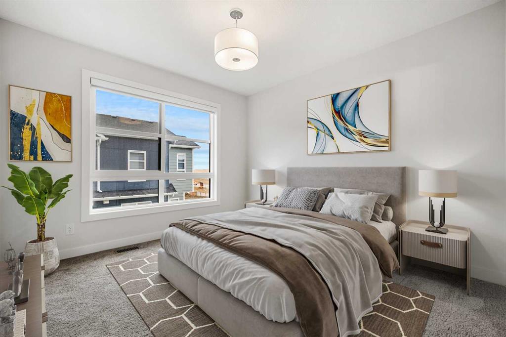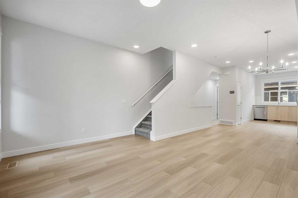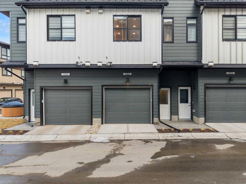 Welcome to #122, 285 Chelsea Court, a stylish brand-new 3-level townhouse offering approximately 1,399 sq. ft. of thoughtfully designed living space in the vibrant community of Chelsea in Chestermere. With contemporary finishes, a functional layout, and immediate possession available, this home is ideal for first-time buyers, professionals, or investors seeking modern low-maintenance living just minutes from Calgary. The main living area features a bright and open-concept design enhanced by luxury vinyl plank flooring and large windows that fill the home with natural light. The modern kitchen is both functional and stylish, showcasing quartz countertops, sleek cabinetry, and quality appliances, while providing ample workspace for everyday cooking and entertaining. The adjacent dining area connects seamlessly to the comfortable living room, creating a welcoming environment for relaxing or hosting guests. A convenient 2-piece bathroom completes this level, along with a flexible open space ideal for a home office, reading area, or additional seating. Upstairs, the home offers two well-sized bedrooms, each featuring the privacy and convenience of its own ensuite bathroom, making this an excellent layout for roommates, guests, or homeowners seeking personal space. The upper level also includes convenient in-suite laundry, adding to the practicality of everyday living. Additional highlights include durable Hardie board siding, an east-facing front exposure, modern flooring selections including vinyl plank, tile, and carpet, and a private balcony/deck perfect for enjoying fresh air or summer evenings. The home also includes a single attached garage, providing secure parking and additional storage. This property is part of a bare land condominium with low condo fees that cover common area maintenance, snow removal, insurance, and professional management, contributing to an easy, low-maintenance lifestyle. Located in the growing Chelsea community, residents enjoy access to parks, playgrounds, walking paths, nearby schools, and local shopping amenities, all within a welcoming neighbourhood environment. With convenient access to Calgary and major commuter routes, this location offers both comfort and connectivity. With modern finishes, functional design, and excellent value, 285 Chelsea Court #122 presents a fantastic opportunity to own a new home in a thriving Chestermere community.