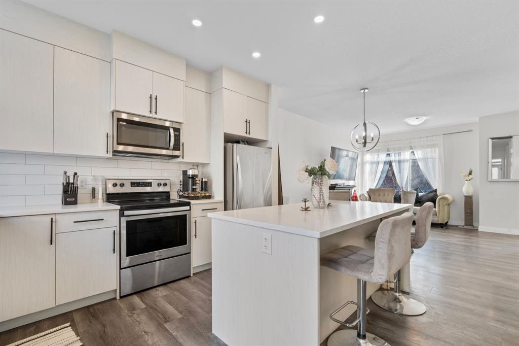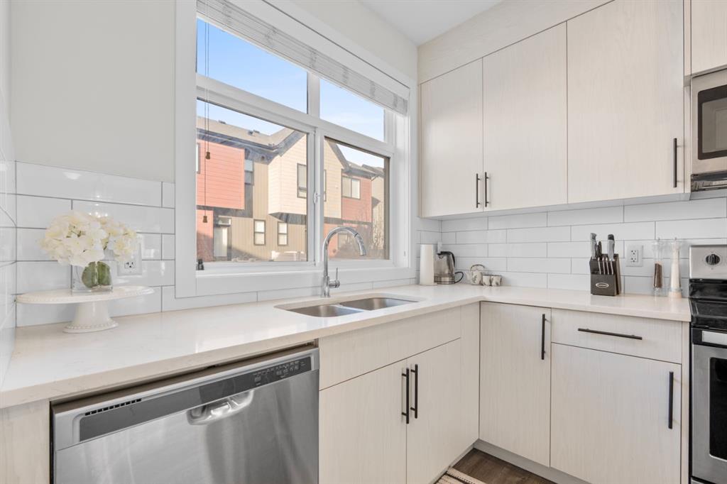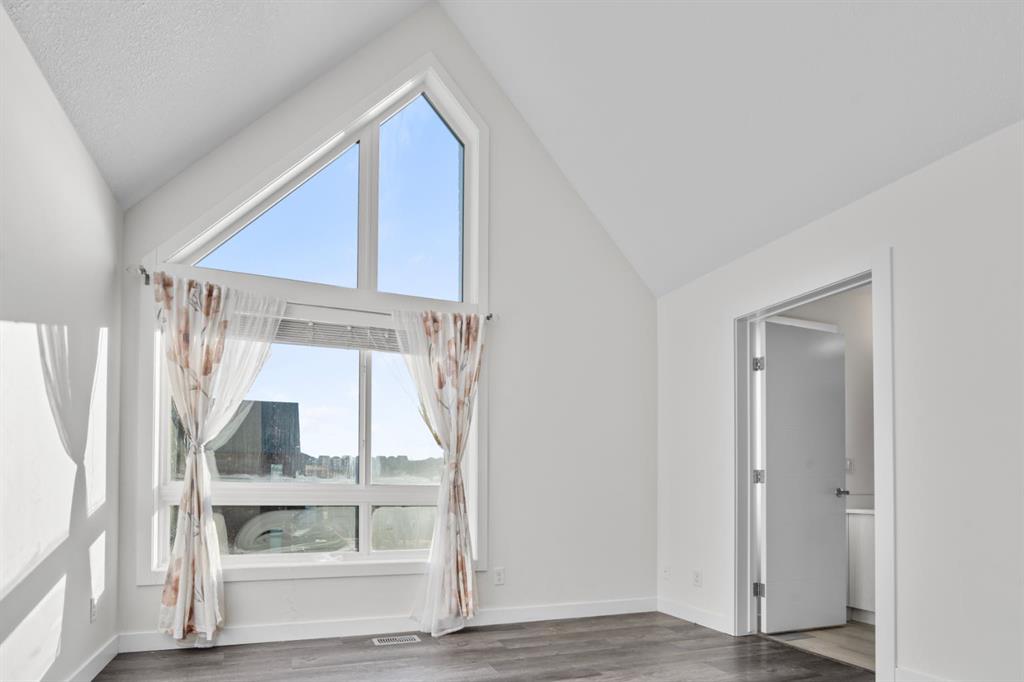 OPEN HOUSE 1-3 PM on the 14th and 15th (Sat/Sun) -Offering over 1,600 sq ft of total living space, this bright and beautifully maintained townhome is designed for the way you live today. The sun filled main floor features an open concept layout that effortlessly connects the living, dining, and kitchen spaces perfect for hosting friends or enjoying quiet nights at home. Step outside to a tastefully finished backyard made for summer evenings, weekend barbecues, and relaxed morning coffee. Upstairs, the smart and sought after dual ensuite layout provides comfort and privacy, with two spacious bedrooms, each featuring its own walk in closet and private bathroom. The primary retreat is elevated by soaring vaulted ceilings and massive windows that flood the room with natural light. The second bedroom offers bright 9 foot ceilings, consistent with the rest of the home. Between the two, you’ll find convenient upper-floor laundry and a dedicated study nook ideal for working from home or creating a focused workspace. The partially finished basement adds flexibility for your lifestyle, whether you envision a home gym, media lounge, or future development tailored to your needs. Stylish, functional, and filled with natural light, this home offers the perfect blend of comfort, privacy, and room to grow. All of this is just minutes from shopping, schools, playgrounds, scenic walkways and bike paths, with beautiful natural surroundings nearby and quick access to Stoney Trail for seamless connectivity across the city.