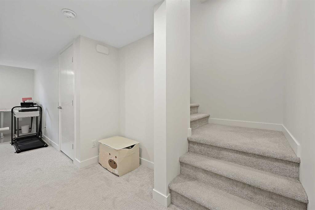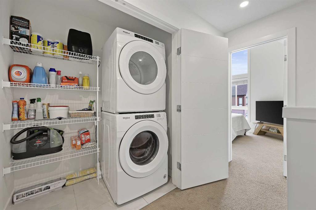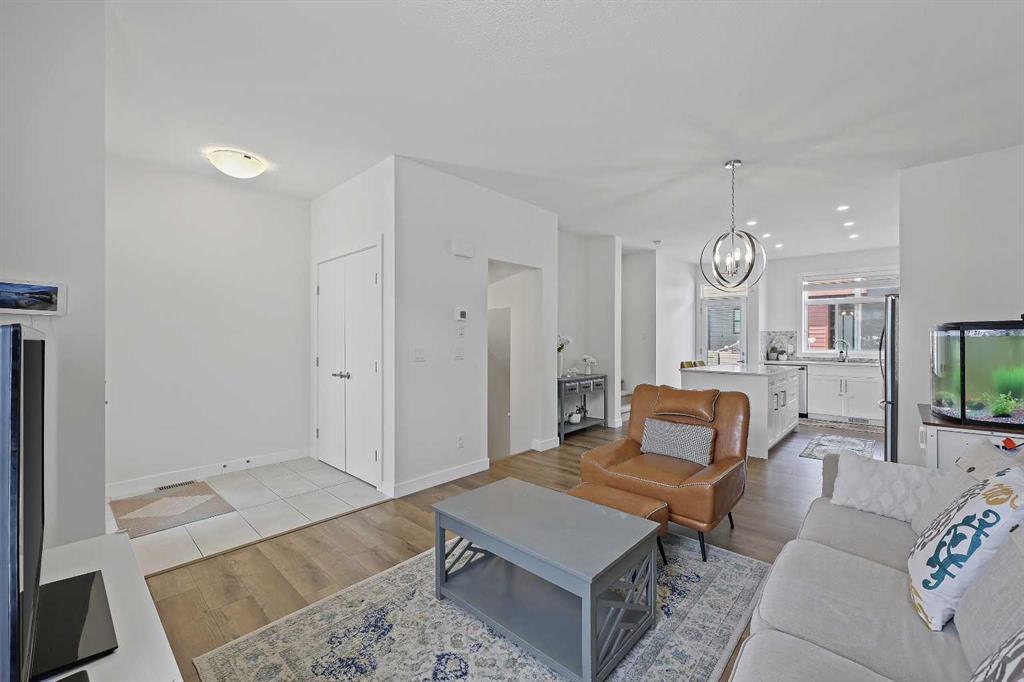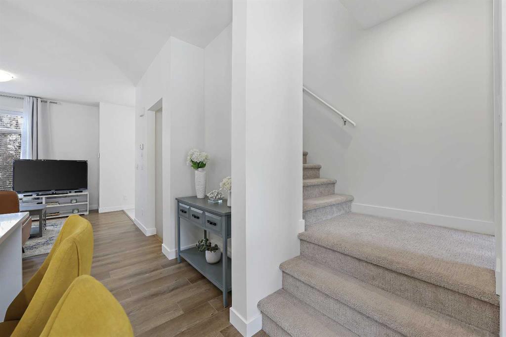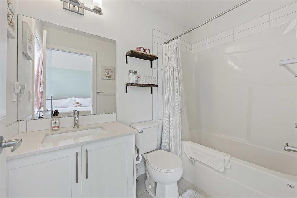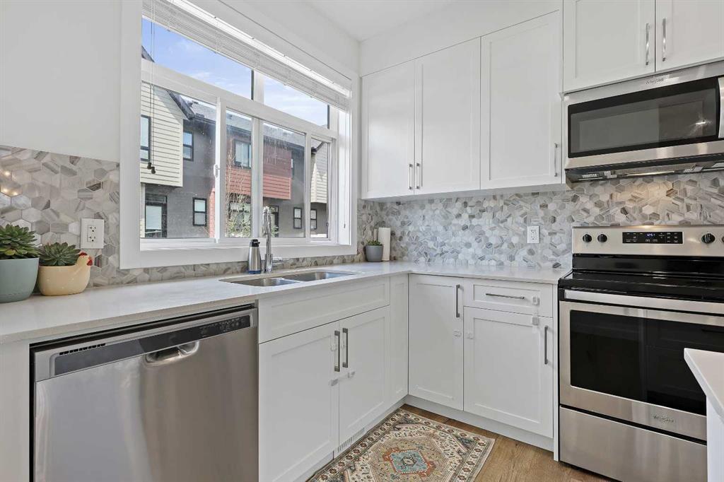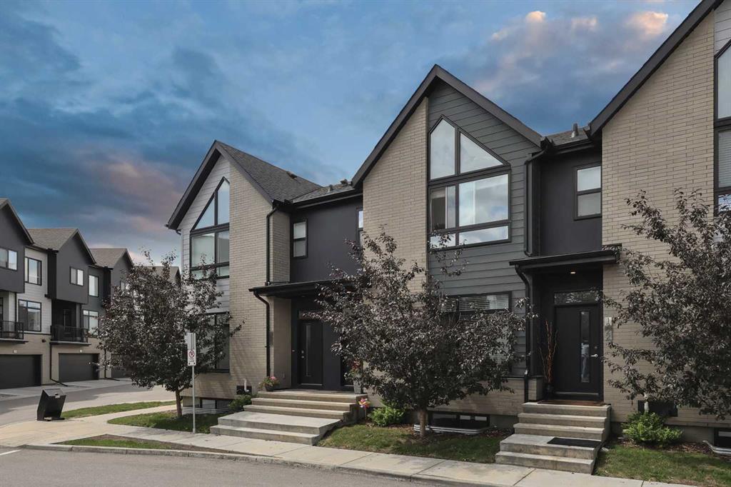 Welcome to this former showhome in the highly desirable community of Sage Hill, offering a perfect blend of modern design, energy efficiency, and functional living in the Arrive at Sage Hill development. With nearly 1,700 square feet of thoughtfully designed space, this 3-bedroom, 3.5-bathroom townhome features a bright, open-concept layout with contemporary finishes throughout. The main floor showcases wide-plank vinyl flooring, quartz countertops, full-height cabinetry, soft-close drawers, and a central kitchen island—perfect for everyday living and entertaining. Step directly from the kitchen into your fenced private yard, ideal for children, pets, or enjoying outdoor relaxation. Upstairs, you'll find a rare dual primary bedroom layout, each with its own walk-in closet and private ensuite. Vaulted ceilings and the convenience of upper-floor laundry complete this well-planned level. The fully developed basement adds versatility with a spacious third bedroom, a full 4-piece bathroom, and a cozy family or recreation room—ideal for guests, a home office, or additional living space. Built with sustainability in mind, this home is equipped with energy-efficient features, including a tankless water heater, high-efficiency furnace, and HRV system for year-round comfort and reduced utility costs. Additional highlights include assigned parking and a prime location close to future schools, shopping, medical services, and easy access to Stoney Trail. Outdoor enthusiasts will appreciate nearby walking paths, natural green spaces, and proximity to Nose Creek Park. This beautifully maintained home offers a turn-key opportunity for first-time buyers, downsizers, or investors. A must-see!