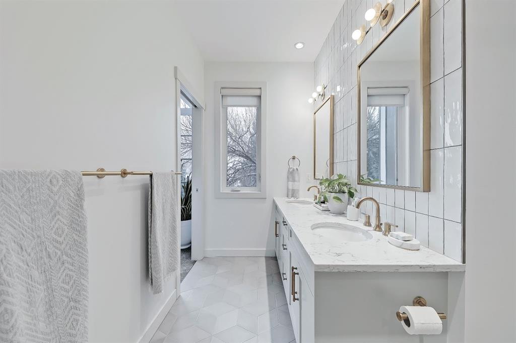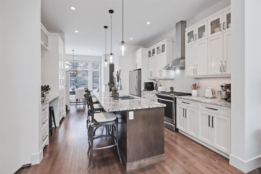 This semi-detached home in Renfrew delivers a bright, modern lifestyle in one of Calgary’s most walkable inner city communities. With 4 bedrooms, 3.5 bathrooms, and a thoughtfully updated interior, it offers the kind of everyday comfort and design-forward details that make it feel instantly welcoming. The main floor opens with 10 ft ceilings, warm hardwood, and big windows that carry natural light from front to back. A true dining room anchors the front of the home—bright, inviting, and perfectly sized for hosting—while still feeling connected to the main living space. The gourmet kitchen is the heart of the main level, built with GRANITE COUNTERS, CUSTOM CABINETRY, STAINLESS STEEL APPLIANCES, and a large island that works for prepping, gathering, or weeknight meals. The layout keeps everything flowing smoothly toward the living area, where generous seating space makes it easy to settle in, anchored by a cozy GAS FIREPLACE—perfect for chilly evenings. At the back of the home, a functional mudroom includes a good-sized closet to keep shoes, coats, and everyday gear neatly organized. Upstairs, the PRIMARY SUITE feels elevated and calm with its 11 ft ceiling and RENOVATED ENSUITE. The ensuite features DUAL VANITY, updated finishes, and a large glass shower that adds a spa-like feel. Two additional bedrooms share a full bathroom, and UPPER LAUNDRY keeps daily routines simple and efficient. The fully developed basement adds valuable extra living space. A spacious family room offers flexibility for movie nights, play space, or a home gym, and the BUILT-IN WORKSTATION makes work-from-home days easier. A full bathroom and a fourth bedroom with a WALK-IN CLOSET complete the level, creating a comfortable setup for guests or older kids. Outside, the PROFESSIONALLY LANDSCAPED BACKYARD is ready for relaxing, gardening, or outdoor entertaining, featuring a new deck and sunny SOUTH exposure that fills the space with warmth and natural light—ideal for lounging in the sun, firing up the BBQ, and hosting friends and family. A DOUBLE DETACHED GARAGE adds everyday ease with secure parking year-round, plus plenty of extra room for bikes, seasonal gear, tools, and storage. Set in a quiet pocket of Renfrew, this home gives you fast access to parks, pathways, schools, and neighbourhood favourites. You’re close to the Renfrew Aquatic Centre, the community sports fields, and the shops and restaurants in both Renfrew and Bridgeland. Quick downtown access and nearby transit make commuting easy, while the area’s strong community feel and walkability add to the day-to-day experience. Altogether, this property stands out as a well-finished, thoughtfully updated inner city home with strong lifestyle value. See it for yourself today!