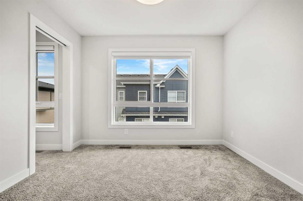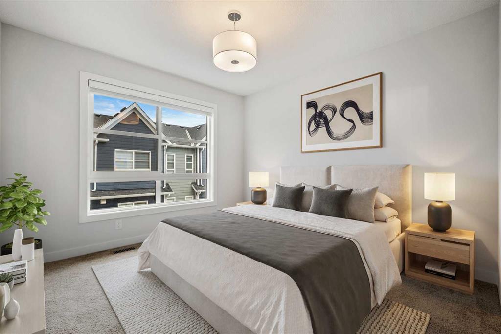 Welcome to #124, 285 Chelsea Court, a stylish brand-new 3-storey townhouse offering over 1,437 sq. ft. of thoughtfully designed living space in the vibrant and growing community of Chelsea in Chestermere. With modern finishes, a functional layout, and immediate possession available, this home is ideal for first-time buyers, professionals, or investors seeking low-maintenance living just minutes from Calgary. The entry level features a versatile bedroom and full bathroom, providing excellent flexibility for guests, a home office, or private workspace. This level also offers convenient access to the single attached garage, adding everyday practicality. The main living level showcases a bright and open-concept layout enhanced by luxury vinyl plank flooring and large windows that fill the space with natural light. The modern kitchen is finished with quartz countertops, sleek cabinetry, and ample workspace, seamlessly connecting to the dining area and spacious living room—perfect for both everyday living and entertaining. A convenient 2-piece powder room completes this level. Step outside to enjoy your private balcony/deck, ideal for relaxing or enjoying fresh air. Upstairs, the home features two well-appointed bedrooms, including a comfortable primary retreat with a walk-in closet and private 4-piece ensuite. An additional bedroom and full bathroom provide flexibility for family, guests, or roommates. The upper level also includes laundry for added convenience. Additional highlights include Hardie board siding for enhanced durability and curb appeal, modern finishes throughout, in-unit storage, and an attached garage. The property has low condo fees that cover common area maintenance, snow removal, and more, offering a low-maintenance lifestyle. Located in Chelsea, residents enjoy access to parks, playgrounds, walking paths, nearby schools, and local amenities, all within a welcoming and growing community. With easy access to Calgary and major routes, commuting is simple and convenient. Combining modern design, functional living spaces, and excellent value, 285 Chelsea Court #124 is a fantastic opportunity to own a new home in a thriving neighbourhood.