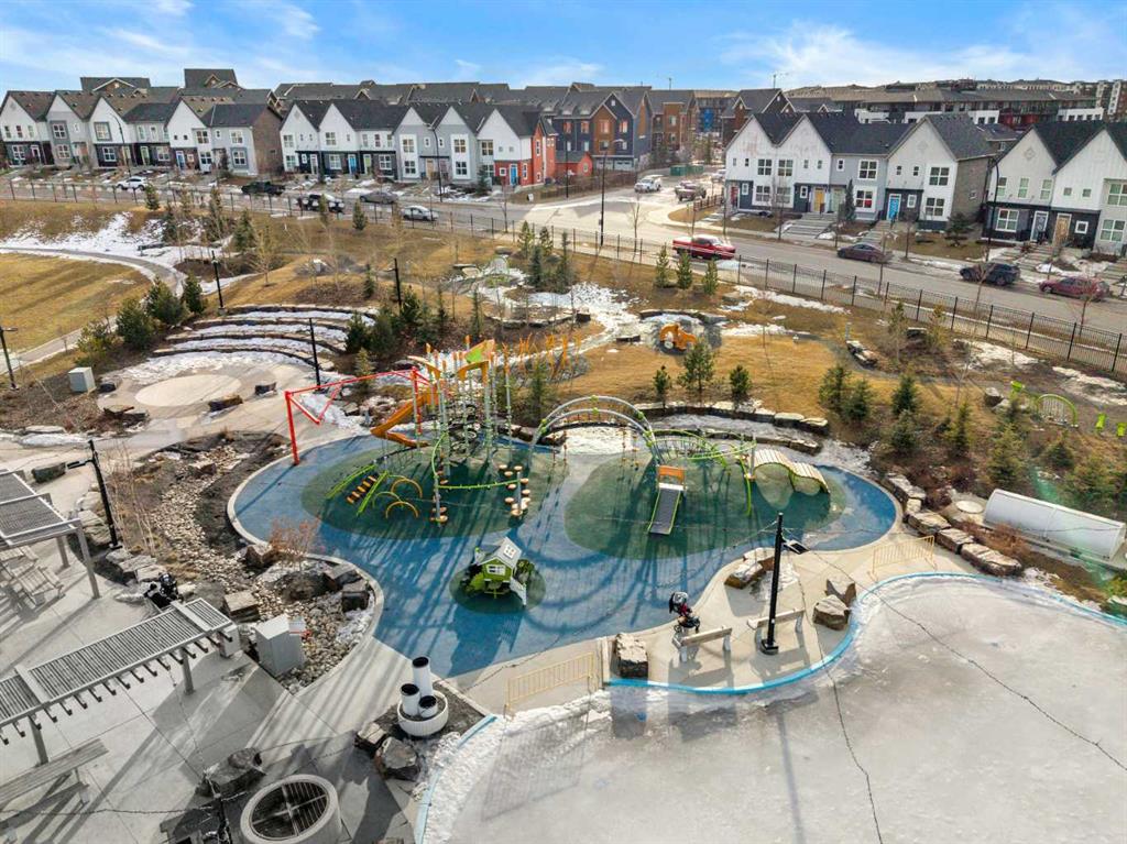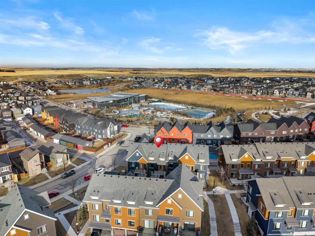 OPEN HOUSE THIS SAT FEBRUARY 7 from 11:00 AM to 4:00 PM and SUN FEBRUARY 8 from 12:00 PM to 3:00 PM. Welcome to 124 Livingston Common NE, a top-floor 2-bedroom townhouse with an attached garage in the community of Livingston. Built in 2019 and still under the Alberta New Home Warranty, this home is the lowest-priced townhouse in North and NW Calgary with an attached garage, offering strong value for buyers. The main living area is open and functional, featuring vaulted ceilings and durable finishes throughout. The kitchen includes white soft-close cabinets, a pantry, white quartz countertops, stainless steel appliances, and an island with breakfast bar, all open to the living space. Luxury vinyl plank flooring runs through the main living area, with carpet featuring 8 lb underlay in the bedrooms and ceramic tile in the bathroom. Two good-sized bedrooms and a full bathroom finish off this floor, with the primary bedroom offering a walk-in closet. No need to compromise on outdoor space with this unit, adjacent to the living room is a large southwest-facing balcony with a BBQ gas line and exterior hose bib, and a gated front patio. On the lower level, you’ll find additional storage under the stairs and direct access to the single attached garage, which is accessed from a paved rear alley. Visitor parking and street parking are available nearby. The condo is pet friendly with a maximum of two cats or dogs, has low condo fees, and is managed by an active condo board. The location offers convenient access to amenities, pathways, and green space, including the Livingston Hub, a year round HOA facility. Nearby, Livingston Centre, an over 100,000 sq ft shopping plaza, is estimated for completion in 2027 and will add additional retail and dining options. The community is planned for future Green Line C-Train access, seven schools, and over 250 acres of parks and open space, with easy access to Stoney Trail, Deerfoot Trail, and Calgary International Airport. This is a well-priced opportunity in a growing community. Call your favourite realtor and book your showing today!