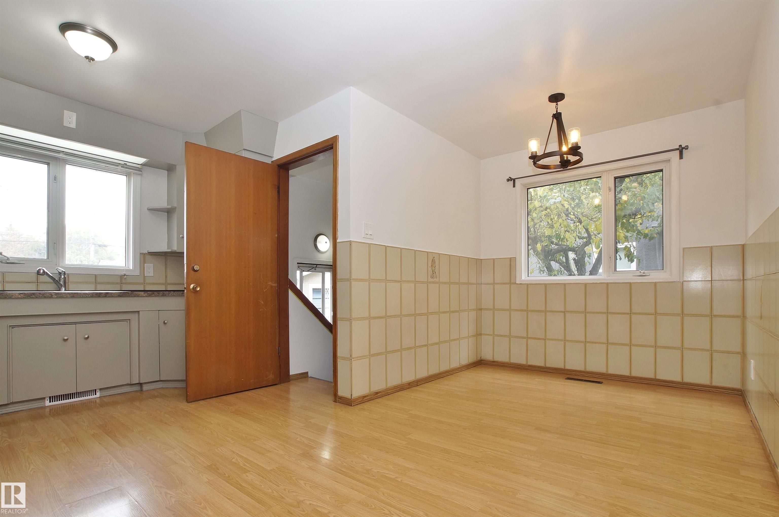 Fantastic opportunity for a growing family or investor. Recent renovations include shingles, PVC windows, Hot Water Tank and brand new H/E Furnace, making this home energy efficient, which saves you money. Huge living room anchored by a corner, stone facing, wood-burning fireplace. 5-bedroom have large windows, both bathrooms seen upgrades in recent years. L-shaped kitchen has a window overlooking the back yard. Spacious dining nook can accommodate a large table for a growing family. Back entry to developed basement, 2 more bedrooms, full bathroom, cold storage room and family room, perfect for quiet evenings at home. Huge 905 m2 lot, fully fenced with back-alley access. Great site to build your future home. Front drive access to garage can easily accommodate an RV or 4 vehicles. Fruit trees and large shed with power. Plenty of space to build future oversized garage or shop. Great location, quiet tree-lined street with quick access to Yellowhead, bus service and shopping.
