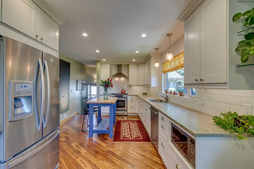 Absolutely gorgeous! Beautifully upgraded & maintained home on a manicured lot in the heart of popular Westgate. These 2nd owners have loved & cared for their home for the past 30 years; now moving out of the province. Main floor offers 1,282 sqft of living space featuring a stunning kitchen, dining & living room renovation. Professionally renovated in 2014 from the studs to drywall & everything in between: insulation, wiring, plumbing & Acacia hardwood flooring, custom stone fireplace, 2 white lacquered glass faced bookcases/wall cabinets. The original sculptured ceiling brings charm to the modern-day renovation & the open design is great for large family gatherings & entertaining! The living room has a huge bay window which brings in an abundance of natural light. Chef's kitchen with leather granite countertops, plenty of upper cabinets, pull-out drawers & wall pantry storage cabinets, plus one of a kind, handcrafted maple top island which is included. Three spacious bedrooms and a beautifully renovated 4-piece bathroom, fully tiled shower & tub with heated tile flooring - don’t miss the hidden medicine & storage closet behind the door. Convenient side door entry for easy access to the backyard and garage. Downstairs is mainly original but all usable space – lots of potential to renovate to your liking! Hobby area featuring an antique wash basin & summer kitchen, guest bedroom (windows not to egress), awesome spa-style 3-piece bathroom, open family room & plenty of storage space. Extensive upgrades: roof (2015), eaves, electrical panel, 2 furnaces (mid efficiency), upgraded insulation in attic, lighting & plumbing fixtures & more! The yard is a gardener’s paradise – over 9 tons of stone surrounding the stunning perennial beds; enjoy being surrounded by the gorgeous mature trees & shrubs. Detached single garage (plenty of room to build a double), paved parking pad for the RV. Located on a quiet street, walk to schools, parks & the community centre, close to the LRT, minutes to downtown & great access west to the mountains. Truly an investment in both lifestyle & real estate! Pride of ownership!