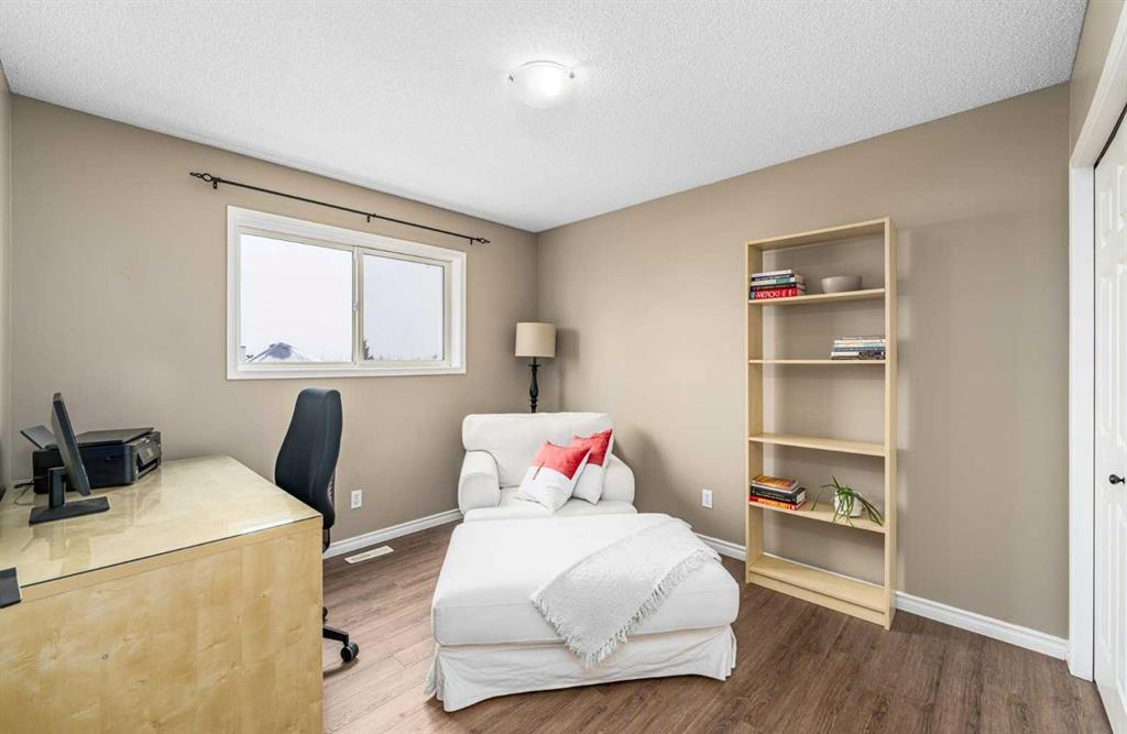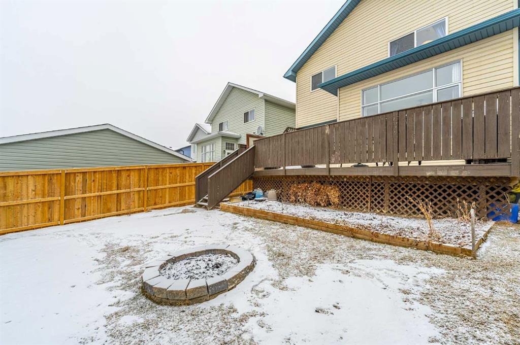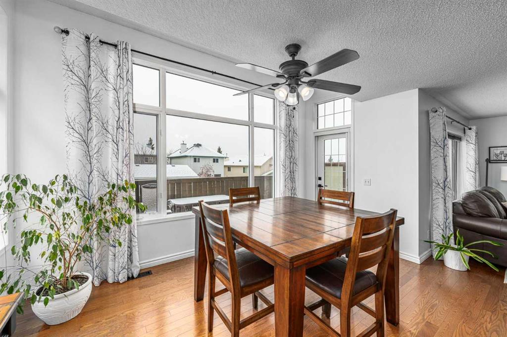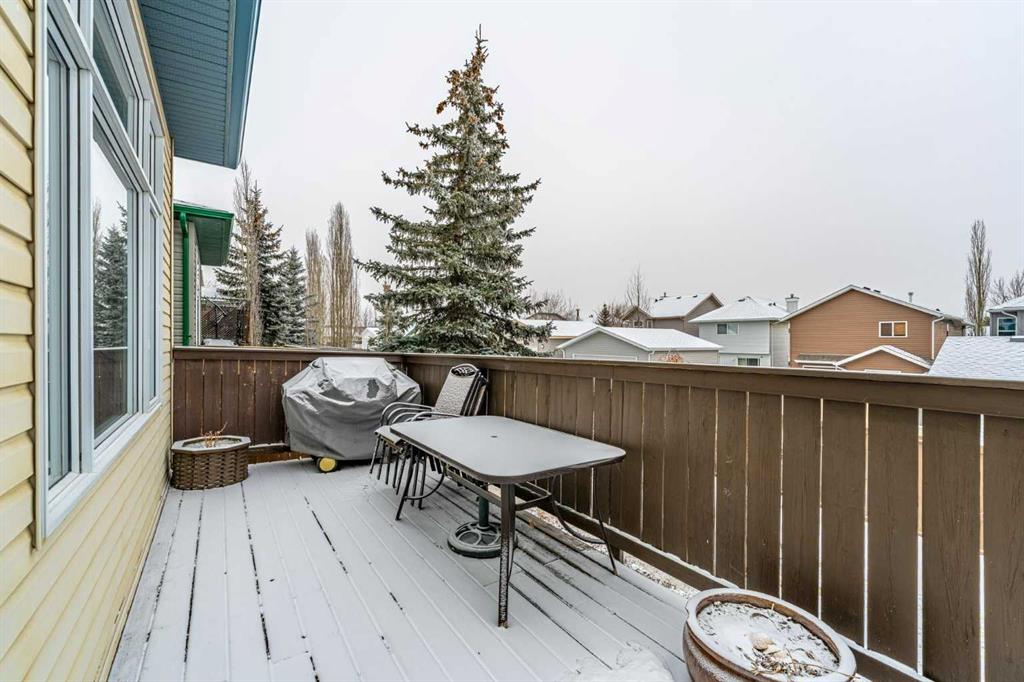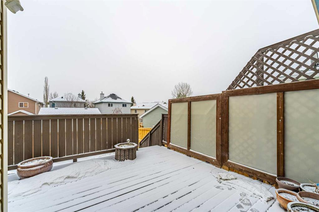 Welcome to this well cared for 4 bedroom, 2.5 bathroom home in a fantastic family friendly location, close to schools, parks, shopping, and major routes for easy commuting. Step inside to a bright, open entryway filled with natural light, creating a warm and welcoming first impression. The main floor features beautiful hardwood flooring and a functional layout designed for everyday living. The kitchen connects seamlessly to the living and dining areas, making it perfect for both family time and entertaining. You’ll appreciate the stainless steel appliances, great workspace, and easy flow throughout the main living space. Main floor laundry and a convenient 2-piece bathroom add extra practicality to daily routines. Upstairs you’ll find three spacious bedrooms and two full bathrooms, providing plenty of room for a growing family. The primary bedroom features a vaulted ceiling, creating a bright and relaxing retreat. The second level also features durable luxury vinyl plank flooring. The developed basement adds valuable living space, complete with a fourth bedroom, making it ideal for guests, a home office, gym, or recreation room. Step outside and enjoy the south facing backyard, perfect for soaking up the sun. The deck is great for summer BBQs and relaxing evenings, and back lane access offers added flexibility. With neighbors set a bit farther away, the yard feels open and comfortable. This home has also been well maintained with a newer furnace, hot water tank, and roof, giving buyers added peace of mind. The location is hard to beat with quick access to Deerfoot Trail and Stoney Trail, making commuting around Calgary simple. The airport, shopping centres, transit hub, and VIVO recreation centre are all nearby. Families will love having multiple schools within walking distance, along with many walking paths, bike trails, and green spaces close by. A move-in ready home offering space, comfort, and an unbeatable location.
