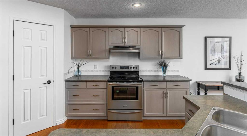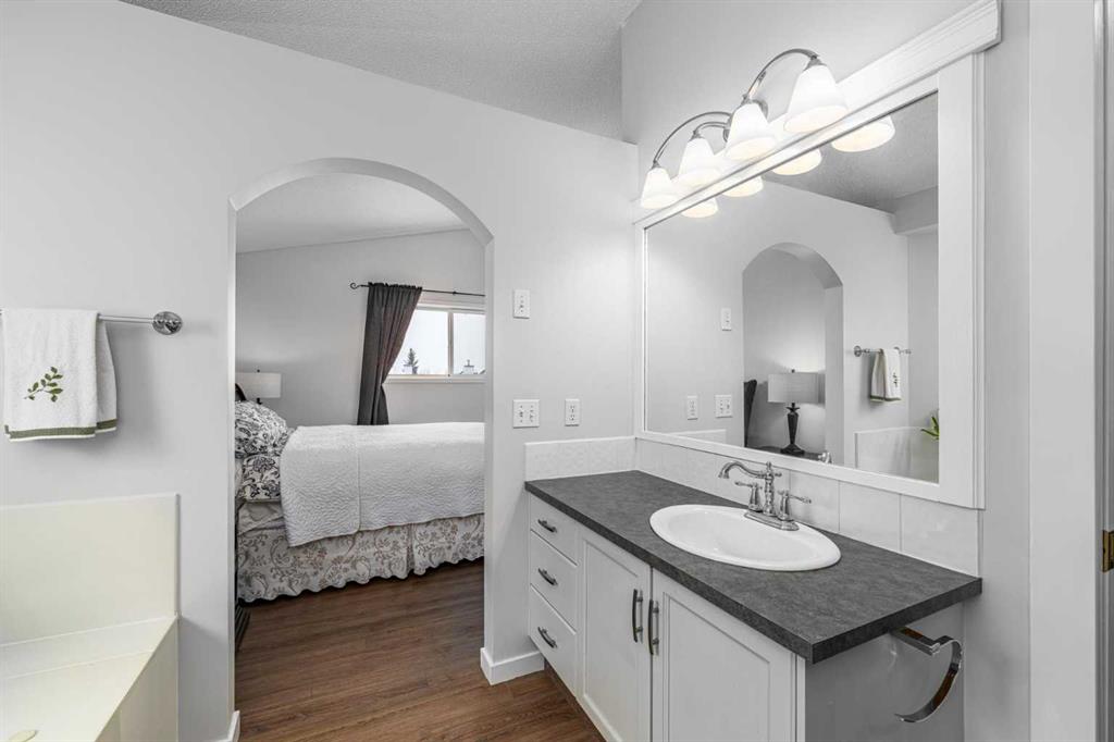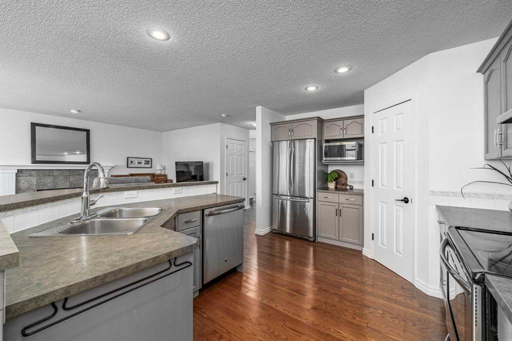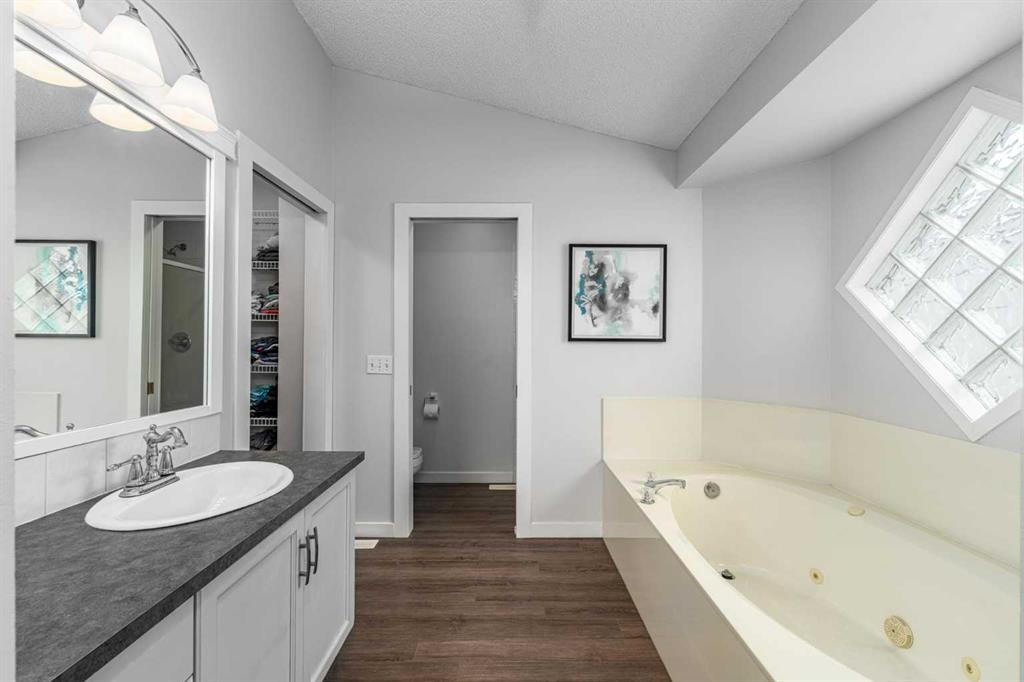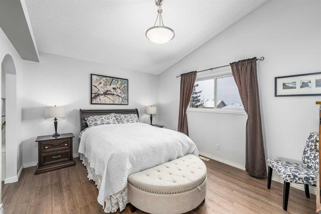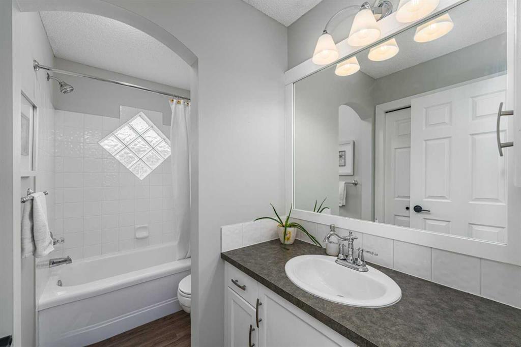 Welcome to this well cared for 4 bedroom, 2.5 bathroom home in a fantastic family friendly location, close to schools, parks, shopping, and major routes for easy commuting. Step inside to a bright, open entryway filled with natural light, creating a warm and welcoming first impression. The main floor features beautiful hardwood flooring and a functional layout designed for everyday living. The kitchen connects seamlessly to the living and dining areas, making it perfect for both family time and entertaining. You’ll appreciate the stainless steel appliances, great workspace, and easy flow throughout the main living space. Main floor laundry and a convenient 2-piece bathroom add extra practicality to daily routines. Upstairs you’ll find three spacious bedrooms and two full bathrooms, providing plenty of room for a growing family. The primary bedroom features a vaulted ceiling, creating a bright and relaxing retreat. The second level also features durable luxury vinyl plank flooring. The developed basement adds valuable living space, complete with a fourth bedroom, making it ideal for guests, a home office, gym, or recreation room. Step outside and enjoy the south facing backyard, perfect for soaking up the sun. The deck is great for summer BBQs and relaxing evenings, and back lane access offers added flexibility. With neighbors set a bit farther away, the yard feels open and comfortable. This home has also been well maintained with a newer furnace, hot water tank, and roof, giving buyers added peace of mind. The location is hard to beat with quick access to Deerfoot Trail and Stoney Trail, making commuting around Calgary simple. The airport, shopping centres, transit hub, and VIVO recreation centre are all nearby. Families will love having multiple schools within walking distance, along with many walking paths, bike trails, and green spaces close by. A move-in ready home offering space, comfort, and an unbeatable location.