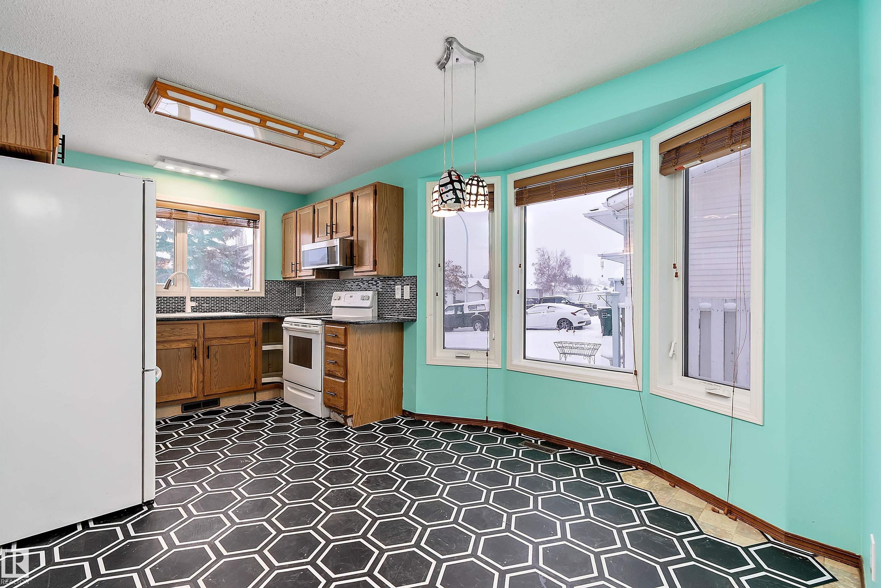 Located in the mature community of Dunluce, this well-maintained bungalow offers a practical layout & excellent access to everyday amenities. The bright main floor features a comfortable living area with good natural light, a dedicated dining space, & a functional kitchen with ample cabinetry & prep space. Two bedrooms are located on the main level, including a spacious primary bedroom, along with a full bathroom & convenient main-floor laundry. The unfinished basement provides generous storage & flexibility for future development. A large detached garage offers ample space for vehicles, tools, seasonal storage, or hobbies. Dunluce is valued for its mature trees, quiet streets, & nearby green spaces, with Dunluce School (K–6) within the community & additional public & Catholic schools nearby. Residents enjoy easy access to parks, playgrounds, public transit, & shopping along 97 Street & Castledowns Road, with Anthony Henday Drive just minutes away. Move-in ready with immediate possession available! HURRY!