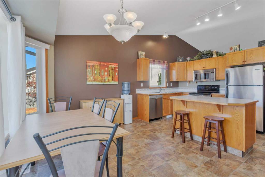This is a desirable Classic floorplan, fully developed 2+2 Bedroom Bi-level with 3 baths and an Attached Garage. Main floor has Dark maple hardwood, Vaulted ceilings and an open Kitchen Dining area. Kitchen Has an island and classic oak cabinets, a pantry and the dinette looks right onto the deck and backyard. Primary features a 3 pc. ensuite. Downstairs for family comfort is a large Familyroom with a Gas Fireplace. 2 Additional Bedrooms and the utility/laundry room. Upgrades include; Shingles 1 year old, Furnace 1.5 years old, Hotwater tank 2 years old. A/C keeps you cool on hot Summer days. The massive Backyard is great for Children to play in. Large Deck expands right across the rear of the home and features a dog run underneath. Located close to local parks and playgrounds in a family area.