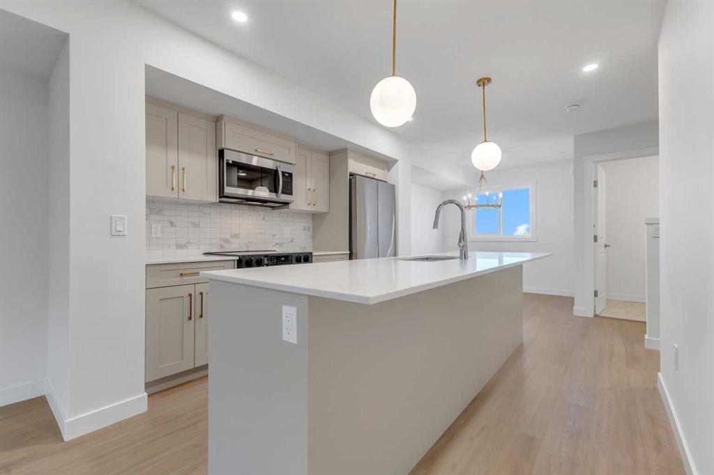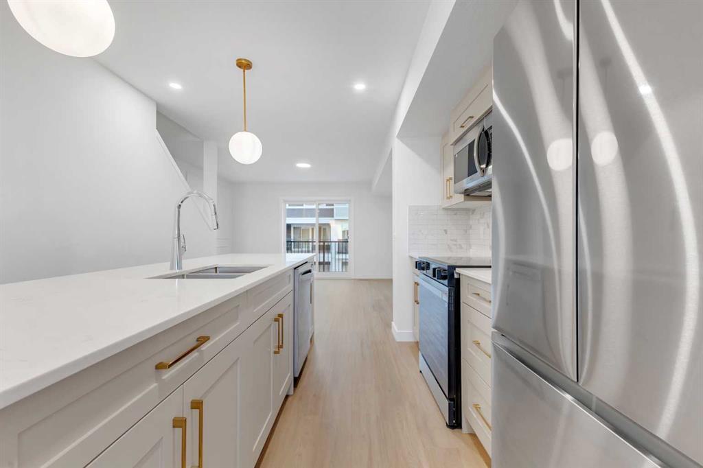 Welcome to your BRAND NEW 3-storey townhome in the vibrant community of Belmont, Calgary. This stunning home features 2 bedrooms, 2.5 bathrooms, and offers 1,358 sq.ft. of thoughtfully designed living space. The bright, open-concept main floor boasts a spacious living area with large windows, a modern kitchen with quartz countertops, full-height cabinetry, stainless steel appliances, and a cozy dining area that’s perfect for everyday living or entertaining. Step out onto your private balcony to enjoy your morning coffee or evening sunsets. Upstairs, you’ll find two generously sized bedrooms, each with its own full bathroom, plus a conveniently located upper-floor laundry. The entry level includes a tandem double attached garage, offering ample space for parking and storage. Located in Belmont, one of Calgary’s fastest-growing communities, surrounded by scenic pond walkways, playgrounds, and parks. Just steps from a future commercial plaza featuring a Tim Hortons, daycare, gas station, and a bus stand right in front of the complex. Enjoy quick access to Stoney Trail, Macleod Trail, and the future LRT extension, making commuting easy. Pet and rental friendly, this home is perfect for first-time buyers or investors seeking modern living, great value, and a thriving community lifestyle.