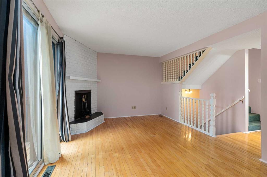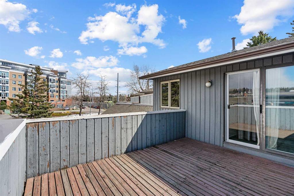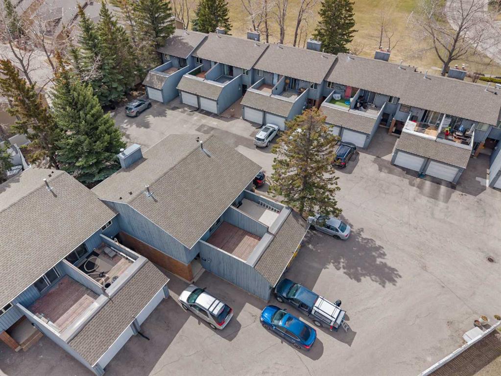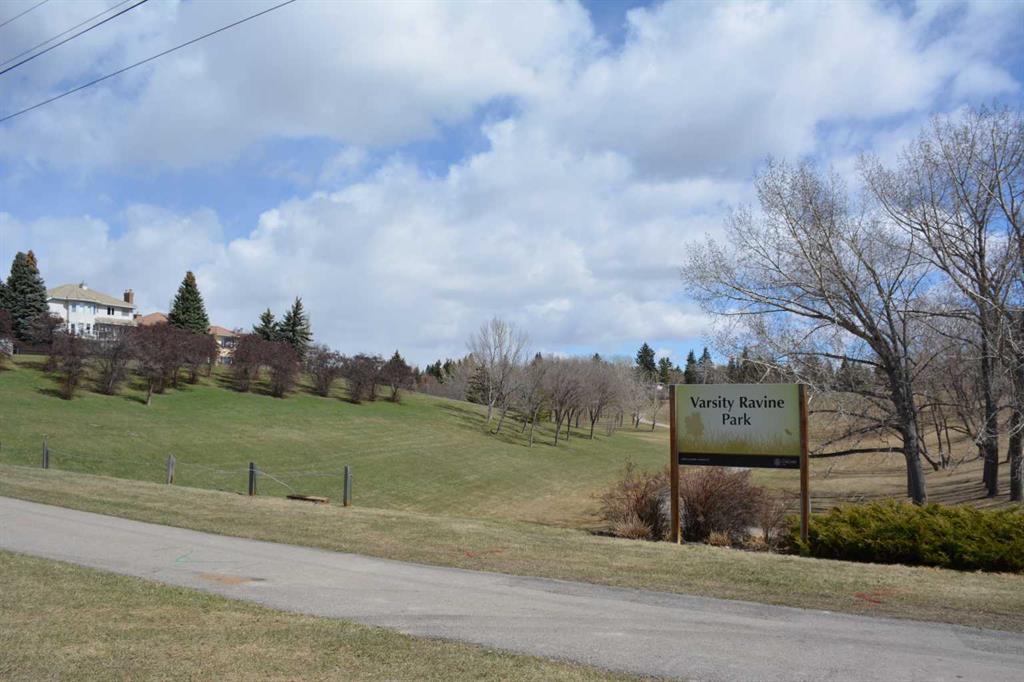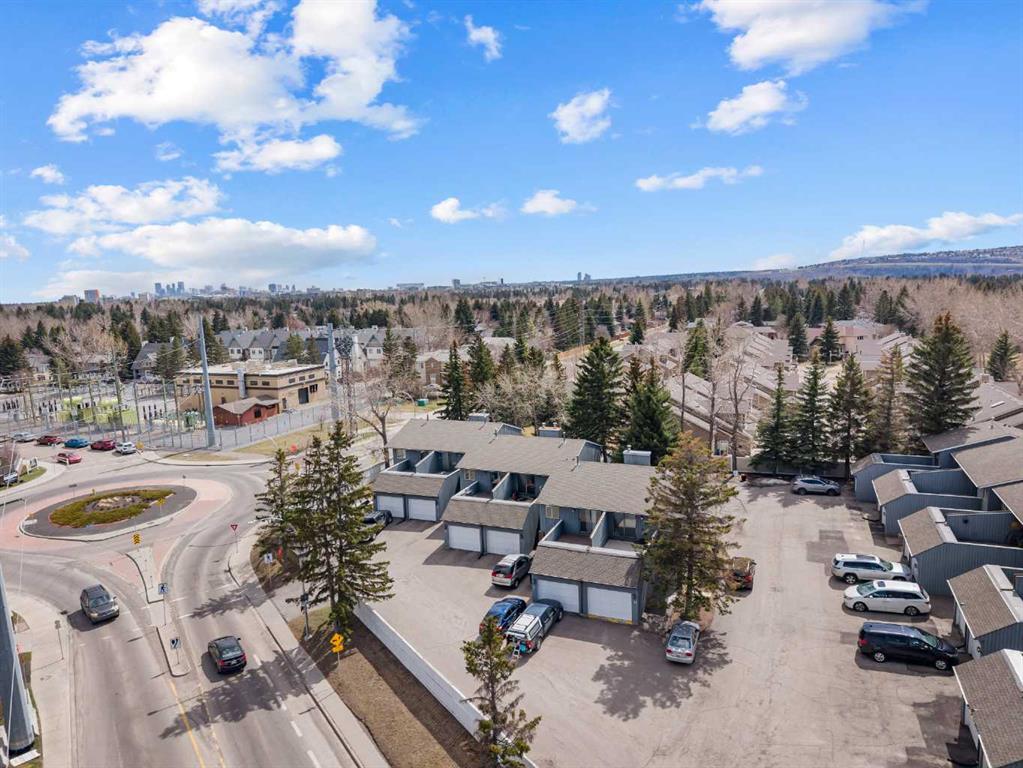 A unique design in VARSITY ACRES, awesome LOCATION (WALK TO Dalhousie LRT, TWO TRAIN STATIONS TO THE U OF C), Walk to Shopping, Sir Winston Churchill High School, VERY LOW CONDO FEES, and an ATTATCHED SINGLE GARAGE make this Varsity townhome a standout for first-time buyers, a young family, or as a rental property. A covered front porch is a welcome feature from the elements. Here is your chance at this unique property and to live in one of Calgary's most desired communities, that is close to Nose Hill Park, Foothills Hospital, Albert’s Children's hospital, and Market Mall. UPGRADES INCLUDE (As of APRIL 24, 2026): ALL CEILING, WALLS, BASEBOARDS, FRONT DOOR, FIREPLACE MANTLE PAINTED, 4 NEW LIGHT FIXTURES. ALSO, NEWER WINDOWS (KITCHEN, 2 BEDROOMS, AND MASTER (3 PANE), VINYL PLANKS 2 BEDROOMS, WASHER/DRYER 2023, FURNACE (AROUND 2016)) ***MAIN FLOOR*** A spacious foyer with big closets opens to the kitchen, which features a spacious layout with plentiful cabinetry and counter space. Natural light from the window over the sink is a fantastic element, and this room offers a great opportunity to update to your taste. An adjacent dining area is perfect for family dinners. In the living room, an actual wood-burning FIREPLACE and original hardwood floors add a wonderful character, and sliding glass doors to the deck flood the space with amazing sunshine from the south. ***UPPER FLOOR*** Upstairs, the primary bedroom has been refreshed with vinyl plank flooring. Large closets and cheater access to the main bathroom makes this feel like a self-contained retreat, and there is also a private vanity with a sink. There are two more bedrooms on this level, one of which includes a BALCONY. ***BASEMENT*** The Partly finished basement begins with a family room, the ideal hangout on movie night. The utility room also holds a laundry area with a newer washer and dryer and a huge amount of storage. A ROUGH-IN FOR A CENTRAL VAC is ready for your system. Plus, a COLD ROOM is fantastic for pantry items or a wine collection. Outside, the DECK enjoys the shade of a mature tree and has new steps. This unit really feels like it has its own yard. It’s one of only a few with south exposure, and the staggered orientation creates a nicely secluded spot just for you. ***THE AREA*** This home is in a self-managed complex with incredibly LOW CONDO FEES, and amazingly well-located in a hidden pocket of the community. Behind the societal complex, SOCCER, BASEBALL FIELDS and PARKS give it a lovely serene setting, and pathways wind throughout the neighbourhood as well. A longer adventure will take you to the golf course and extensive off leash parks that run along the Bow River. In the other direction, a huge array of amenities is available at Crow Square just across the street, or a 5 minute walk over to Dalhousie Station to find everything you could need. Commuters will love quick access to both Crowchild Trail and the LRT, while students will appreciate proximity to the University.