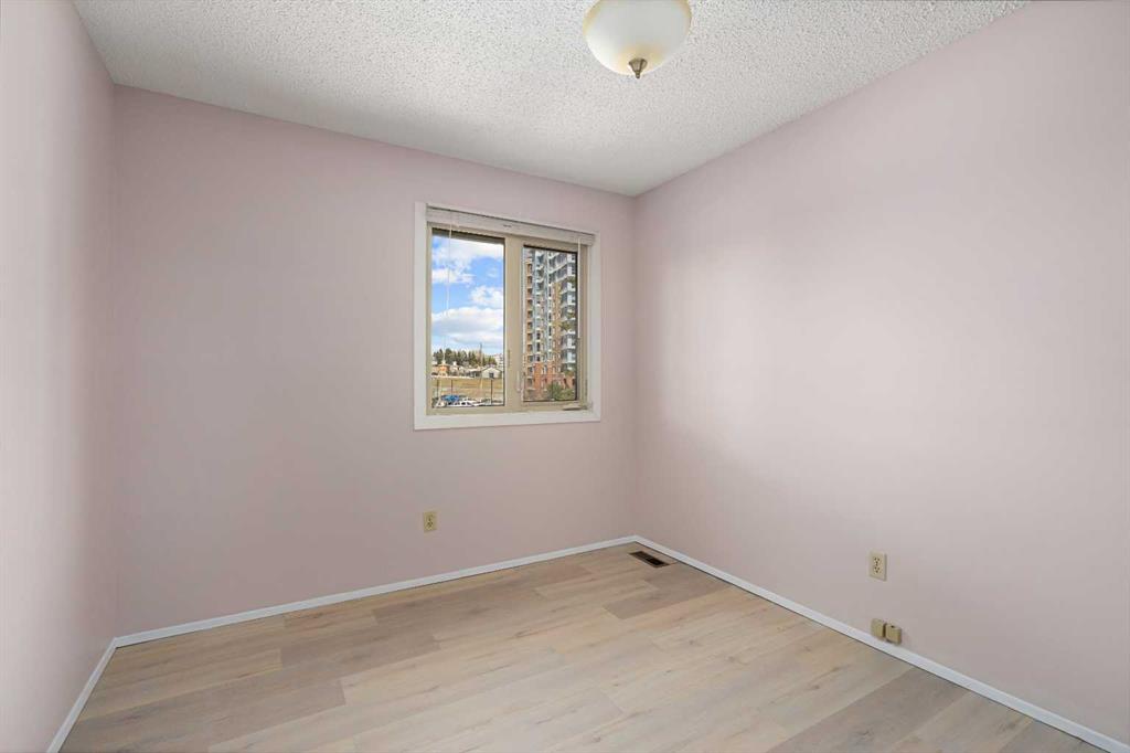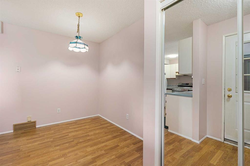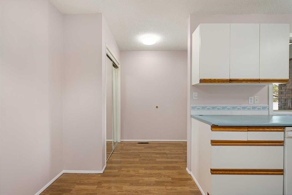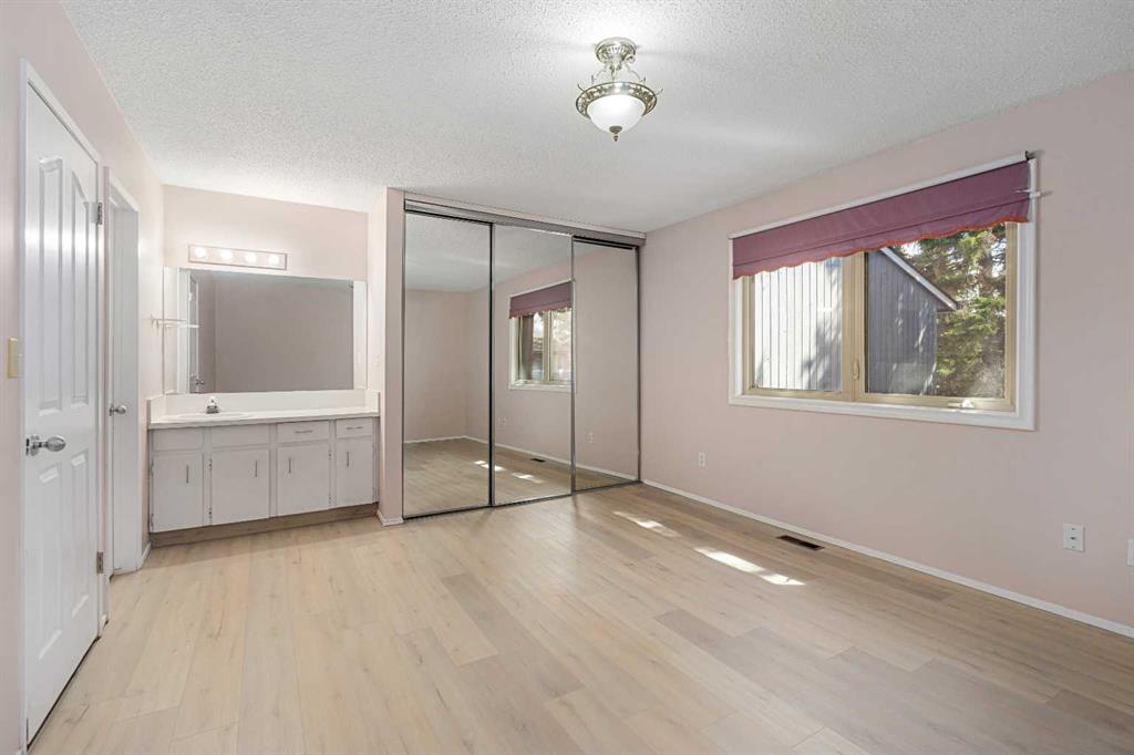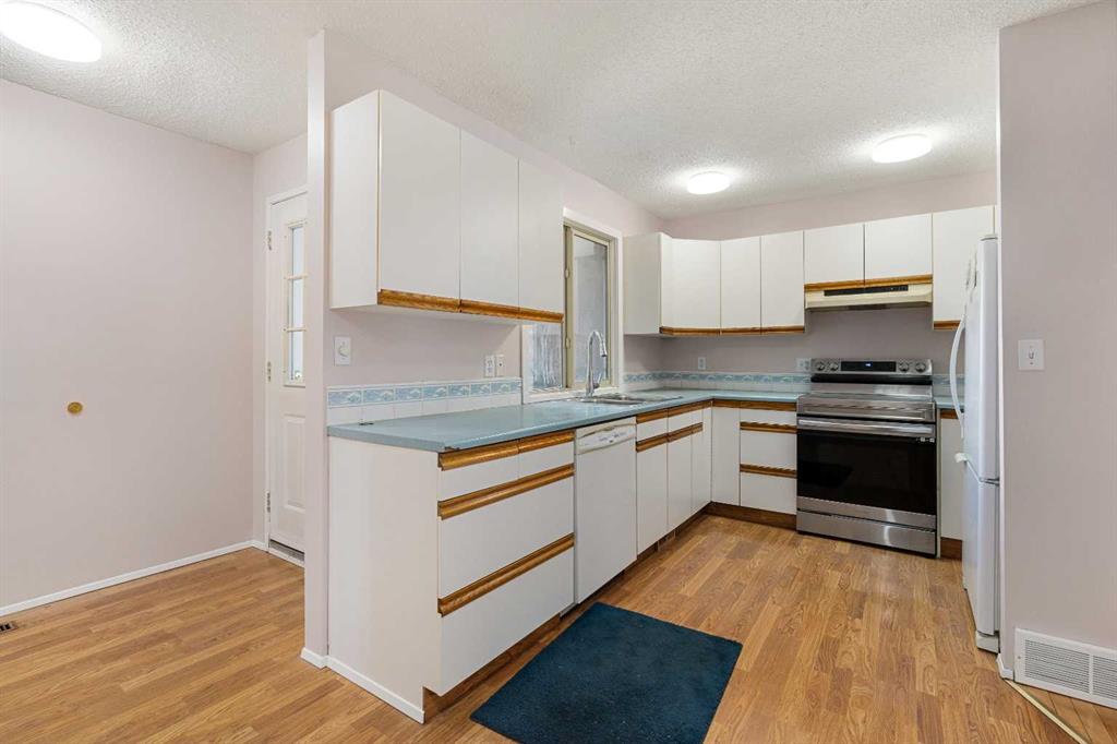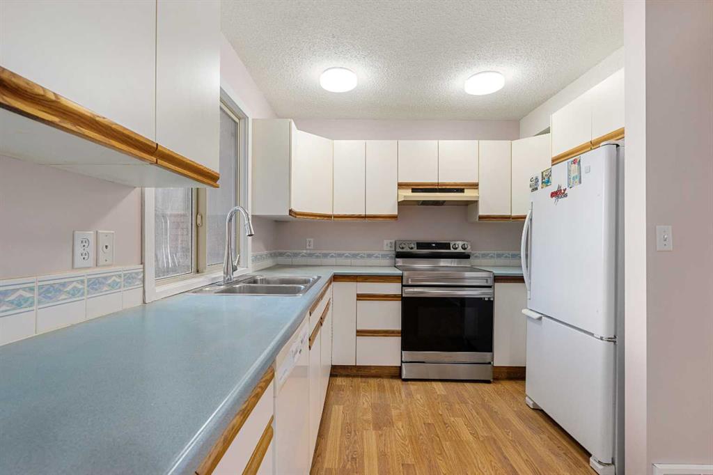 A unique design in VARSITY ACRES, awesome LOCATION (WALK TO Dalhousie LRT, TWO TRAIN STATIONS TO THE U OF C), Walk to Shopping, Sir Winston Churchill High School, VERY LOW CONDO FEES, and an ATTATCHED SINGLE GARAGE make this Varsity townhome a standout for first-time buyers, a young family, or as a rental property. A covered front porch is a welcome feature from the elements. Here is your chance at this unique property and to live in one of Calgary's most desired communities, that is close to Nose Hill Park, Foothills Hospital, Albert’s Children's hospital, and Market Mall. UPGRADES INCLUDE (As of APRIL 24, 2026): ALL CEILING, WALLS, BASEBOARDS, FRONT DOOR, FIREPLACE MANTLE PAINTED, 4 NEW LIGHT FIXTURES. ALSO, NEWER WINDOWS (KITCHEN, 2 BEDROOMS, AND MASTER (3 PANE), VINYL PLANKS 2 BEDROOMS, WASHER/DRYER 2023, FURNACE (AROUND 2016)) ***MAIN FLOOR*** A spacious foyer with big closets opens to the kitchen, which features a spacious layout with plentiful cabinetry and counter space. Natural light from the window over the sink is a fantastic element, and this room offers a great opportunity to update to your taste. An adjacent dining area is perfect for family dinners. In the living room, an actual wood-burning FIREPLACE and original hardwood floors add a wonderful character, and sliding glass doors to the deck flood the space with amazing sunshine from the south. ***UPPER FLOOR*** Upstairs, the primary bedroom has been refreshed with vinyl plank flooring. Large closets and cheater access to the main bathroom makes this feel like a self-contained retreat, and there is also a private vanity with a sink. There are two more bedrooms on this level, one of which includes a BALCONY. ***BASEMENT*** The Partly finished basement begins with a family room, the ideal hangout on movie night. The utility room also holds a laundry area with a newer washer and dryer and a huge amount of storage. A ROUGH-IN FOR A CENTRAL VAC is ready for your system. Plus, a COLD ROOM is fantastic for pantry items or a wine collection. Outside, the DECK enjoys the shade of a mature tree and has new steps. This unit really feels like it has its own yard. It’s one of only a few with south exposure, and the staggered orientation creates a nicely secluded spot just for you. ***THE AREA*** This home is in a self-managed complex with incredibly LOW CONDO FEES, and amazingly well-located in a hidden pocket of the community. Behind the societal complex, SOCCER, BASEBALL FIELDS and PARKS give it a lovely serene setting, and pathways wind throughout the neighbourhood as well. A longer adventure will take you to the golf course and extensive off leash parks that run along the Bow River. In the other direction, a huge array of amenities is available at Crow Square just across the street, or a 5 minute walk over to Dalhousie Station to find everything you could need. Commuters will love quick access to both Crowchild Trail and the LRT, while students will appreciate proximity to the University.