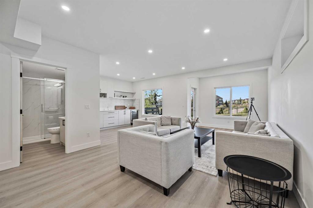 *** OPEN HOUSE Saturday, January 17, 2026 2pm – 4pm *** Welcome home, in Cranston’s exclusive Riverstone. This 2,167 sq ft two-storey, family home, walks out directly to walking paths and a peaceful pond. Featuring 4 bedrooms and 3.5 bathrooms, this spacious family home is thoughtfully laid out with all bedrooms on the upper level—alongside a spacious bonus room. The open-concept main floor boasts 9' ceilings, oversized windows, and direct sightlines to the pond and walking paths behind. The gourmet kitchen is anchored by an 8-foot island, complete with quartz countertops, stainless steel appliances, and an extended walk through pantry with generous storage and unbeatable prep space. Upstairs, the spacious primary suite offers a 4 pc ensuite, with a deep soaker tub, glass shower, large vanity with makeup area, plus a generous walk-in closet. Recent interior upgrades include new lighting throughout—chandeliers, ceiling fans, and pot lights. The lower level, finished in 2025, provides over 730 sqft of additional living space, with a wet bar/kitchenette, large recreation room, office nook, full 3pc bath with a walk-in shower, and two storage rooms. The insulated, attached double garage (over 385 sqft) completes the package. Your outdoor living options include an expansive upper deck (complete with natural gas hook up, an oversized ground level patio, and easily maintained landscaping with unique foliage in the backyard. You'll especially love the direct access to walking trails and the nearby Bow River right from your backyard. Easy access to Deerfoot and Stoney Trails. Convenient to Seton YMCA, excellent schools, all the shops and restaurant amenities. Do not miss your opportunity to bring your family to one of Calgary’s most desirable upscale communities!