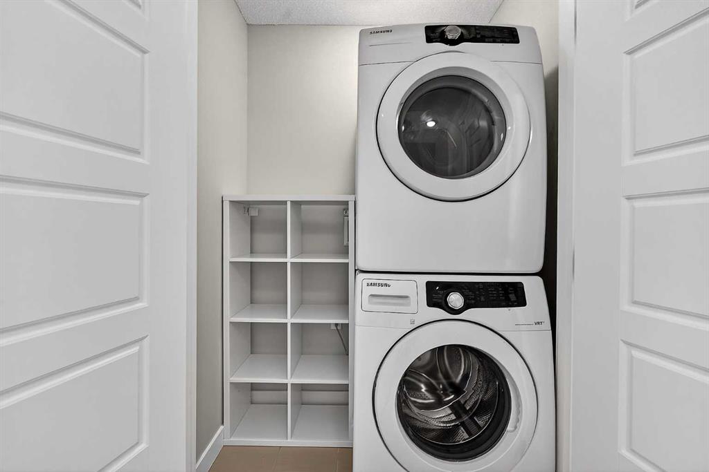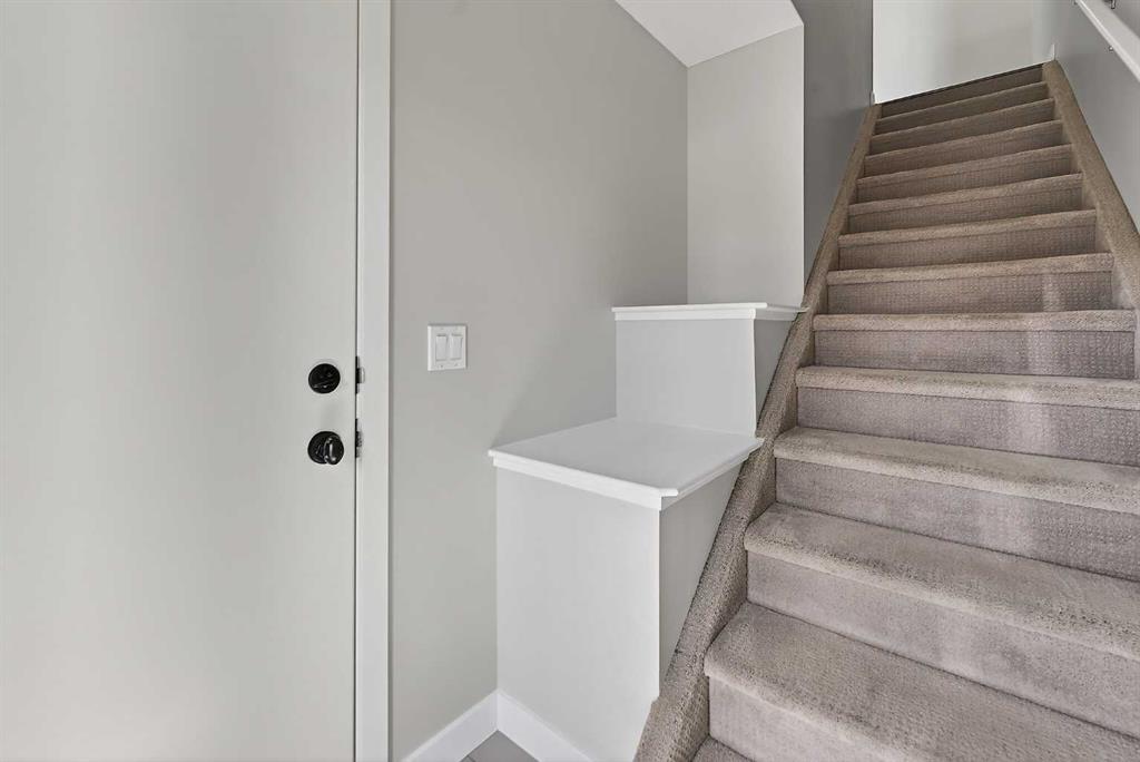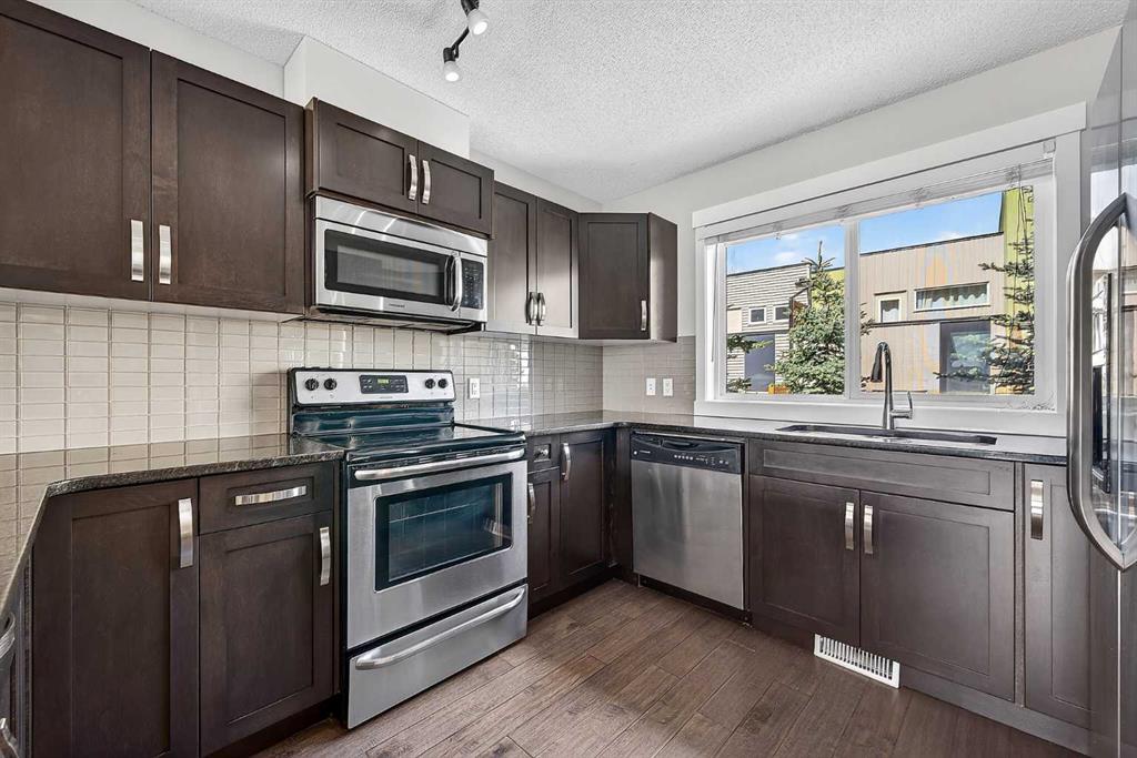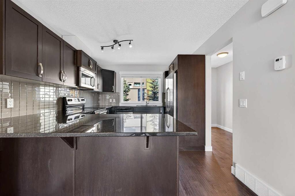 Welcome to Coventry Station! This unit has been lovingly maintained and is freshly painted; ready and waiting for a new owner. Imagine your life simplified for efficiency in this well-appointed, 3 level townhome. An open concept living room, dining room, and kitchen features engineered hardwood floors and is bathed in natural light. Your new deck just beyond the kitchen is perfect for enjoying a morning coffee or barbecuing and unwinding in the evening. Both bedrooms are tucked away upstairs. The primary bedroom features an ensuite and plenty of storage while the secondary bedroom is generously sized too; and offers a cheater door to the primary bathroom. The stackable washer/dryer in the hall will make laundry day a breeze. The attached single car garage has a sizeable storage space conveniently tucked away for seasonal items, your new lifestyle is ready in Coventry Hills; where all the conveniences are within easy reach- an ideal choice with amenities including Schools, Vivo, Shopping Centres, Superstore, Express Bus Park n Ride Terminal, and so much more!
