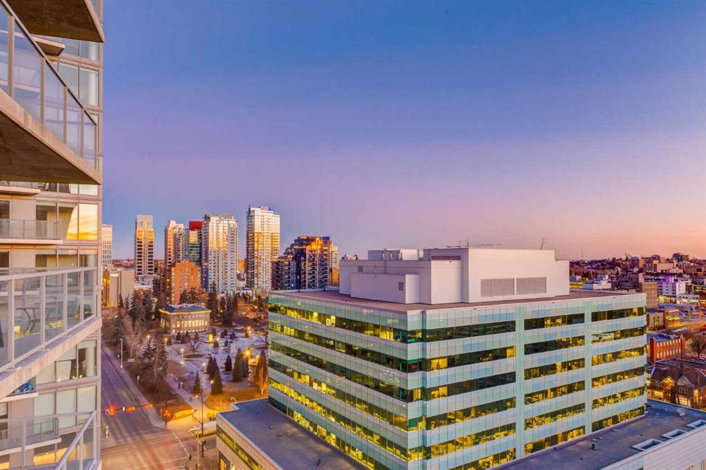 WELCOME to this MOVE IN READY 13th Floor AIR CONDITIONED UNIT, w/1 BEDROOM, 1 ½ BATHROOMS, in a 908 sq ft CONDO in the CONNAUGHT Area in the BELTLINE, w/1 TITLED Stall in the Underground HEATED Parkade + 1 TITLED Storage Unit + GORGEOUS MOUNTAIN VIEWS from the SOUTH-FACING Balcony!! Entering this EXECUTIVE SUITE is a spacious foyer leading into the main living area. You’re greeted by an EXPANSIVE open-concept floorplan that has 9 ft Ceilings all framed w/FLOOR-TO-CEILING Windows, creating a BRIGHT, AIRY SPACE. A seamless flow for EVERYDAY LIVING & ENTERTAINING. The MODERN Kitchen is designed to IMPRESS incl/STAINLESS STEEL WHIRLPOOL Appliance package, ELECTRIC STOVE, BUILT-IN DISHWASHER, MICROWAVE w/INTEGRATED HOOD FAN, FULL-SIZE FRIDGE + BEVERAGE FRIDGE. Enjoy the GENEROUS QUARTZ Countertops CEILING-HEIGHT Cabinetry w/Pull Out Drawers, a DOUBLE STAINLESS STEEL SINK + a COMMERCIAL-STYLE Pull-down Spray Faucet. The OPEN-CONCEPT Living & Dining Rooms provide a WELL-PROPORTIONED, INVITING space ideal for HOSTING Dinner Parties, RELAXING after a long day, or ENJOYING conversations w/FRIENDS — all while feeling COMFORTABLE, FUNCTIONAL + EFFORTLESSLY STYLISH. Enhanced w/DIMMER LIGHTING + WIRED-FOR-SOUND throughout, this space delivers BOTH AMBIENCE + ENTERTAINMENT at the touch of a button. Step outside to your SPACIOUS SOUTH-FACING BALCONY, w/a GAS LINE for BBQ's + perfectly positioned for ALL-DAY SUN + SWEEPING VIEWS w/RARE 3-DIRECTION VIEW CORRIDOR (SE, S, SW). Enjoy SUNRISE TO SUNSET, MOUNTAIN VIEWS, direct sight lines to CENTRAL MEMORIAL PARK + a PREMIUM vantage point for STAMPEDE FIREWORKS—all WELL ABOVE STREET ACTIVITY for ultimate privacy and comfort. A GUEST 2 pc POWDER ROOM adds convenience for hosting. The LARGE PRIMARY SUITE offers more FLOOR TO CEILING Windows + a GENEROUS CLOSET. RETREAT to the SPA-INSPIRED ENSUITE, DUAL SINKS, a SEPARATE SOAKER TUB, a FULLY ENCLOSED GLASS SHOWER + a PRIVATE WATER CLOSET, complemented by a STACKED Washer + Dryer for added CONVENIENCE. The WELL-MANAGED CASTELLO BUILDING is BUILT w/CONCRETE, making this a QUIET, SOLID BUILDING. Enjoy a WELL-EQUIPPED ONSITE GYM, CAR WASH BAY IN THE PARKADE, SECURE UNDERGROUND PARKING + INDOOR VISITOR STALLS, w/FOB-CONTROLLED ACCESS to the building, elevators + amenities, all supported by VIDEO SURVEILLANCE + ON-SITE MANAGEMENT, adding PEACE OF MIND. The building is PET-FRIENDLY (Condo Board Approval Required). Located in the HEART OF CONNAUGHT, Castello places you STEPS FROM DOWNTOWN, 4th Street/Mission, 17th Avenue shopping + dining, Central Memorial Park, River Pathways, Cultural Venues, Transit, Protected Bike Lanes + Everyday Essentials. Enjoy TRUE WALKABLE URBAN LIVING w/all the energy of the city, WITHOUT THE CONGESTION + NOISE of other Beltline locations. Don't Miss Out!! Book your showing NOW!!