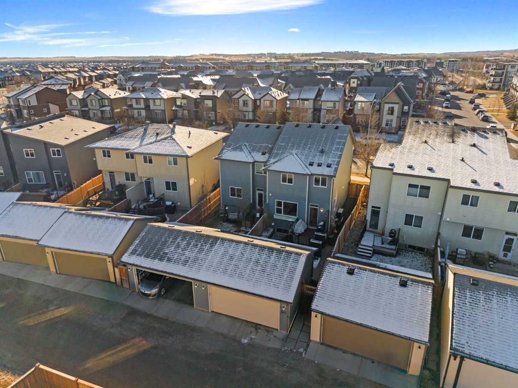 Welcome to 1307 Walden Drive SE — a beautifully cared-for and thoughtfully upgraded duplex in the heart of Walden, offering 1,633 sq ft of bright, comfortable living. From the moment you step inside, the home has a calming, intentional feel, with natural light pouring through large windows and spaces that genuinely work for everyday life. The front of the home opens into a standout flex space that’s currently set up as a study, warmed by built-in bookshelves, big windows, and soft South-facing natural light. It’s one of those rooms that immediately feels lived-in and loved — perfect for working, reading, or simply settling in with your morning coffee. The kitchen is anchored by quartz counters, upgraded lighting, and an island that makes the entire main floor feel connected. From here, you look across the dining and living areas, creating a clean and cohesive finish throughout. The living room is bright and inviting, framed by upgraded fixtures and a large windows, with direct access to the backyard through the rear entrance mud room. Upstairs is where this home truly shines. The primary bedroom is a retreat in every sense — vaulted ceilings, incredible natural light through a nearly floor-to-ceiling window with a sliding door, and a charming Juliet balcony that brings a boutique feel to the space. The ensuite is equally impressive, offering a separate shower and deep soaker tub, along with a spacious walk-in closet complete with a window. It’s a suite that feels special, comfortable, and genuinely relaxing. Two additional bedrooms and another full bathroom complete the functional and impressive upper level. The basement is unfinished but well thought out, with rough-ins for both a bathroom and a wet bar, with floor plans showing a smart layout option for future development. Outside, the backyard is private and low-maintenance, with a back deck built in 2021, raised flower beds added in 2022, and pet-friendly artificial grass running along the side of the home — a perfect dog-run setup that keeps things tidy year-round. The double detached garage is connected side-by-side with the neighbour’s and includes extra outlets for tools, hobbies, or working on projects. Additional upgrades include air conditioning installed in 2024 and the home was professionally repainted in 2022 including spraying the doors. This is a warm, welcoming home in a great community — thoughtfully designed, updated where it counts, and ready for its next chapter.