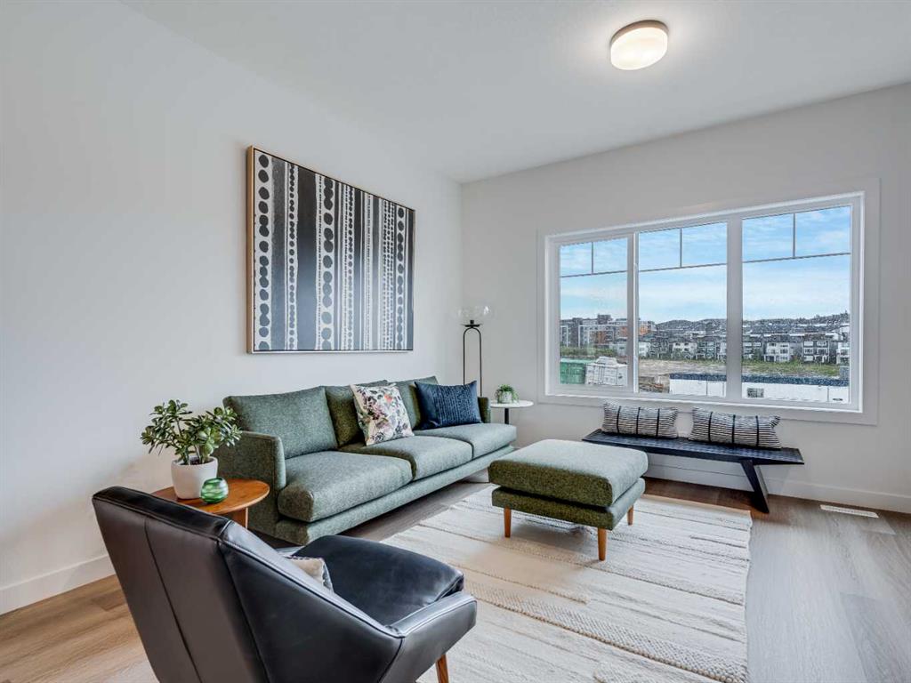 **Open House on Saturday: 1 pm-4 pm** Explore a series of stylish heritage-inspired row houses located close to the center of our scenic Environment Reserve Park! This Heritage model A combines comfort and functionality, making it perfect for families and professionals. With 2 bedrooms, 2.5 bathrooms, and a flexible main-floor den, this expansive home is tailored for contemporary living. Upon entering, you will discover a bright ground-floor den or home office that includes a large window, a closet, and a handy powder room. Enjoy a beautifully landscaped front yard, a single attached garage, and additional parking in the driveway. The open-concept main floor features 9' ceilings and is bathed in natural light, creating a cozy and welcoming atmosphere for daily living or entertaining guests. The modern kitchen is equipped with quartz countertops, a breakfast bar, high-end stainless steel appliances, and a chimney-style range hood. Sliding doors lead to a full-sized balcony — perfect for unwinding or dining outside. On the upper level, there are two roomy bedrooms, including a primary suite that has a double access closet and a private ensuite with a stand-up shower and a sliding glass door. A second full 3-piece bathroom is available for the additional bedroom, which can also serve as a home office. The upper floor further includes a washer and dryer conveniently situated, a linen closet, and ample storage options throughout. This home is located in vibrant Springbank Hill and offers easy access to Aspen Landing, Rundle College, Griffith Woods, Ambrose University, restaurants, and senior care facilities. **The price includes GST.
