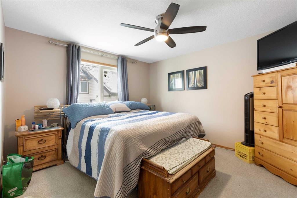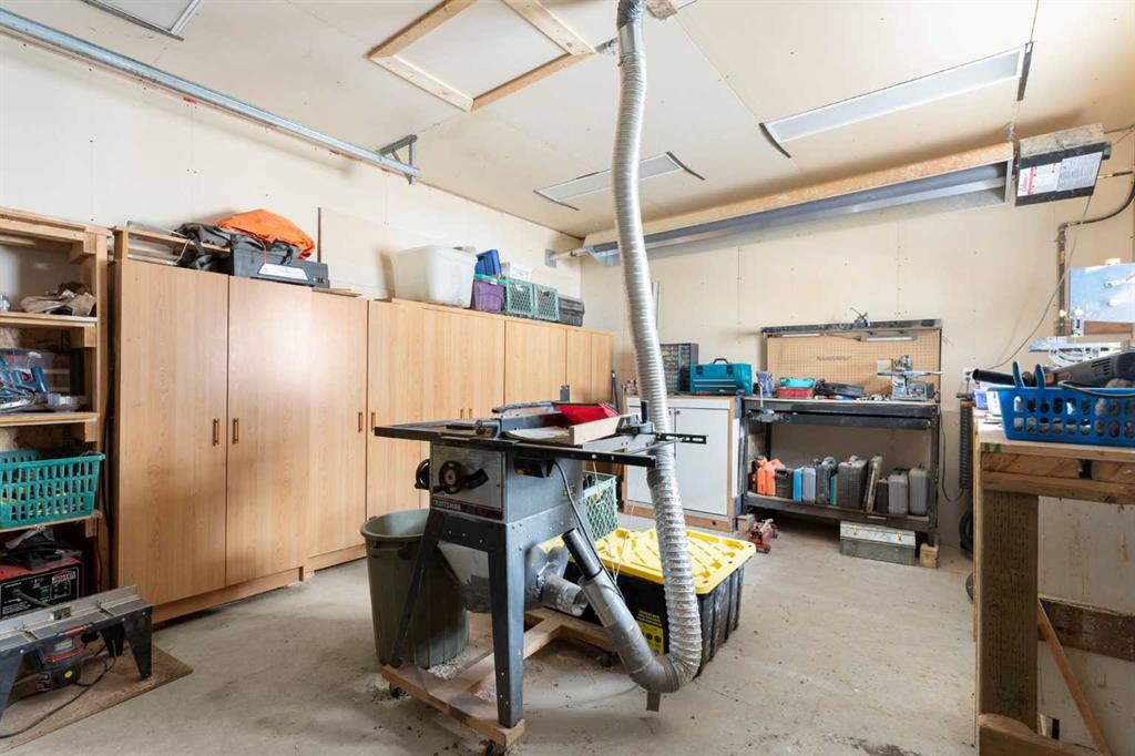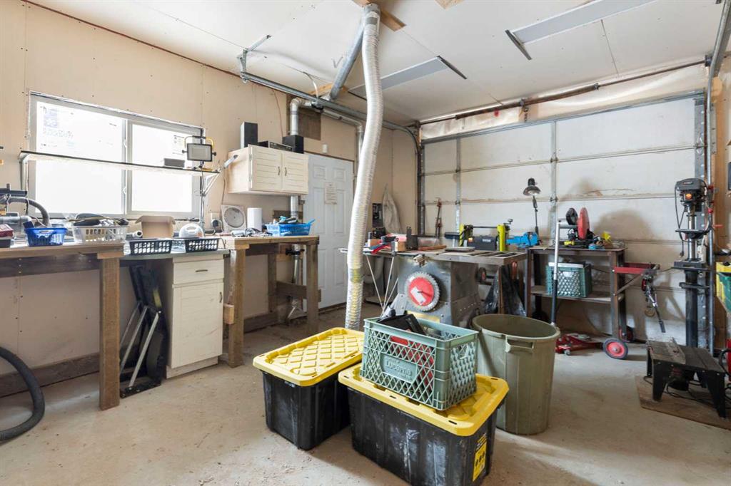 Welcome to this well-maintained and fully developed bungalow situated on a spacious, beautifully landscaped, corner lot in a mature, quiet area of Strathmore. Offering over 2,300 sq ft of developed living space, this home combines functional layout, generous room sizes, and the rare bonus of a second garage/workshop. The main floor features a bright and inviting living room filled with natural light, a dedicated dining area, and an updated kitchen complete with a central island, tile backsplash, and ample cabinetry for storage and prep space. There are three bedrooms (one currently used as an office) on the main level, including a comfortable primary bedroom with direct access to the 4-piece bathroom, creating an ensuite-style feel while still serving the main floor. Convenient main floor laundry adds everyday practicality. The fully developed basement offers exceptional additional living space, highlighted by a massive rec room with a cozy gas fireplace — perfect for movie nights or entertaining. The lower level also includes a large fourth bedroom with walk-in closet, a full bathroom featuring a relaxing jetted tub, plus utility and storage space. One of the standout features of this property is the garage setup. In addition to the attached double garage, there is a separate detached heated garage/workshop that is fully powered and ideal for hobbyists, woodworkers, mechanics, or anyone needing dedicated workspace. This flexible setup provides incredible versatility for storage, projects, or home-based business use. There is also a paved driveway in the yard that could be used for RV parking. Also outside, enjoy the large deck with privacy wall, mature trees, underground sprinklers in the flower beds and the privacy that comes with a corner lot. A rare opportunity offering developed space, functional layout, and the bonus of two garage structures — perfect for families, hobbyists, or anyone needing extra room to live and work. All windows are new and come with warranty, A/C under warranty and furnace, hot water tank and irrigation all serviced 6 months ago.