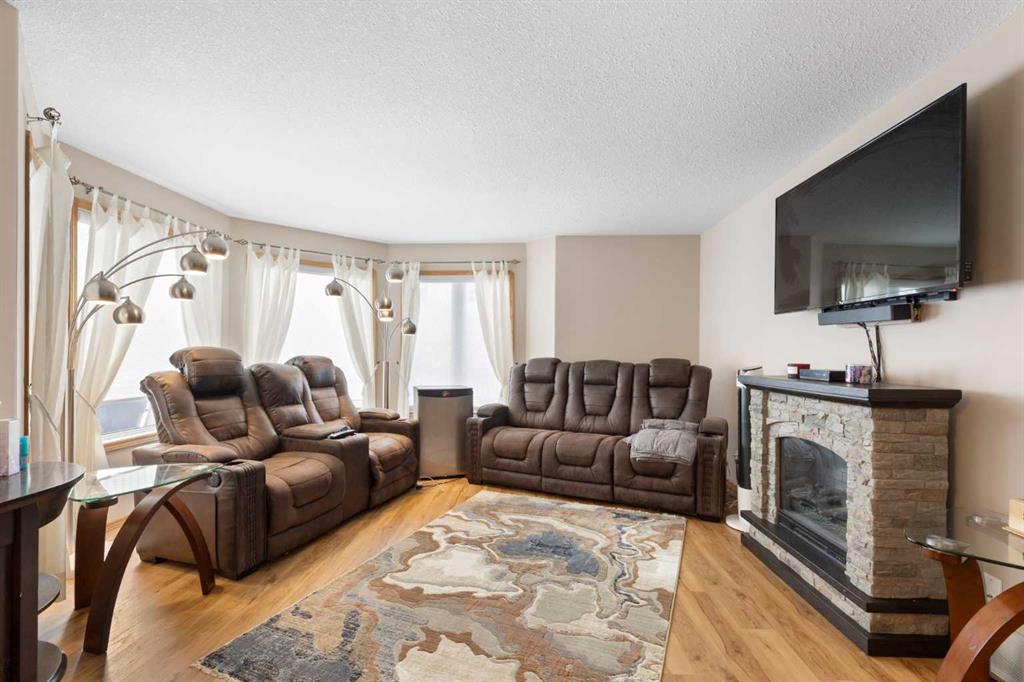 Welcome to this well-maintained and fully developed bungalow situated on a spacious, beautifully landscaped, corner lot in a mature, quiet area of Strathmore. Offering over 2,300 sq ft of developed living space, this home combines functional layout, generous room sizes, and the rare bonus of a second garage/workshop. The main floor features a bright and inviting living room filled with natural light, a dedicated dining area, and an updated kitchen complete with a central island, tile backsplash, and ample cabinetry for storage and prep space. There are three bedrooms (one currently used as an office) on the main level, including a comfortable primary bedroom with direct access to the 4-piece bathroom, creating an ensuite-style feel while still serving the main floor. Convenient main floor laundry adds everyday practicality. The fully developed basement offers exceptional additional living space, highlighted by a massive rec room with a cozy gas fireplace — perfect for movie nights or entertaining. The lower level also includes a large fourth bedroom with walk-in closet, a full bathroom featuring a relaxing jetted tub, plus utility and storage space. One of the standout features of this property is the garage setup. In addition to the attached double garage, there is a separate detached heated garage/workshop that is fully powered and ideal for hobbyists, woodworkers, mechanics, or anyone needing dedicated workspace. This flexible setup provides incredible versatility for storage, projects, or home-based business use. There is also a paved driveway in the yard that could be used for RV parking. Also outside, enjoy the large deck with privacy wall, mature trees, underground sprinklers in the flower beds and the privacy that comes with a corner lot. A rare opportunity offering developed space, functional layout, and the bonus of two garage structures — perfect for families, hobbyists, or anyone needing extra room to live and work.