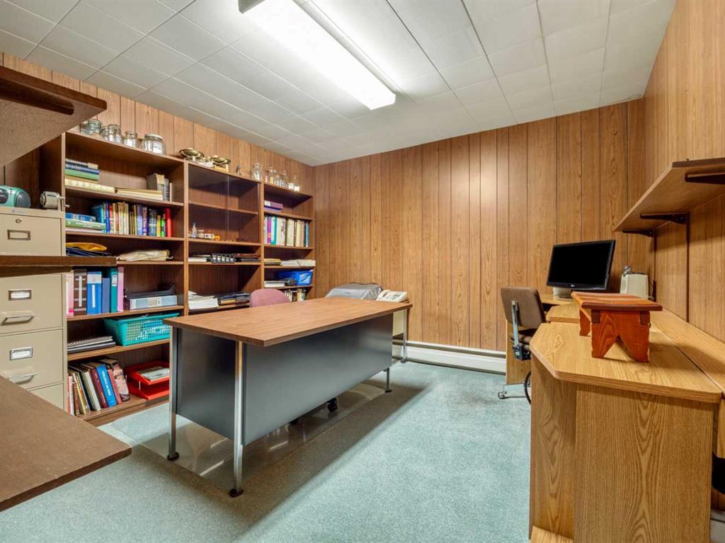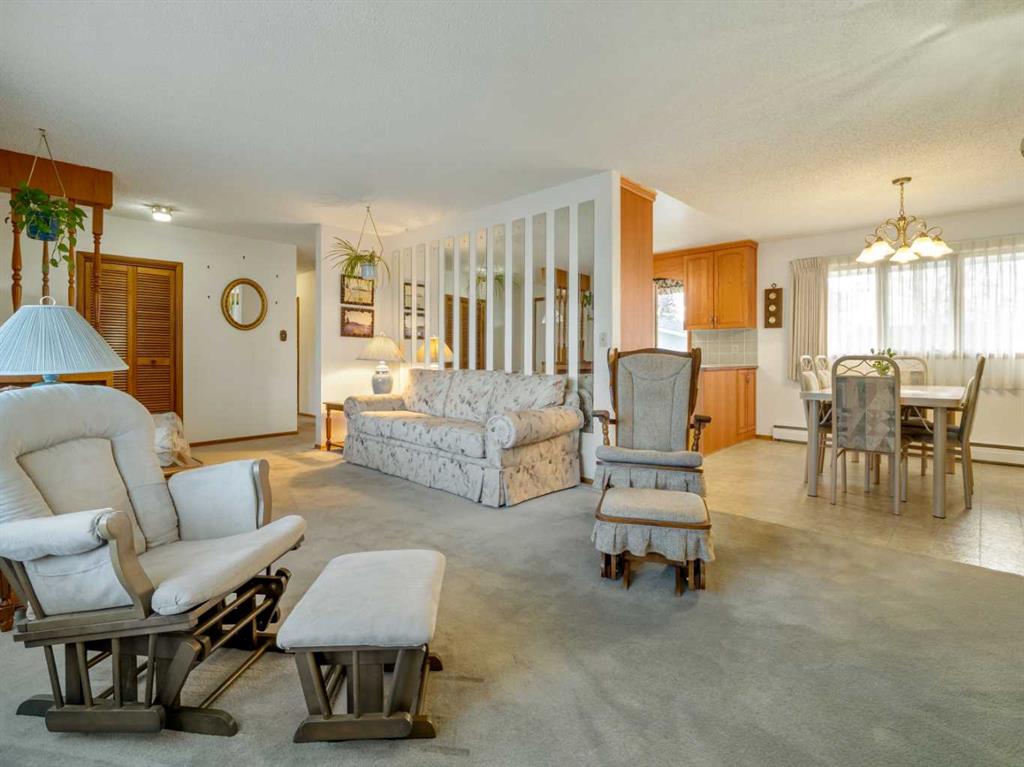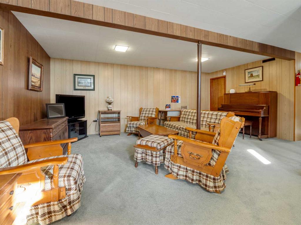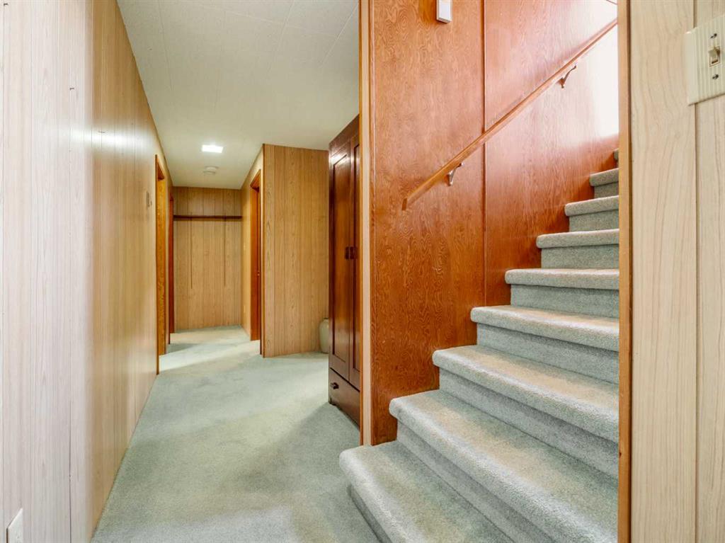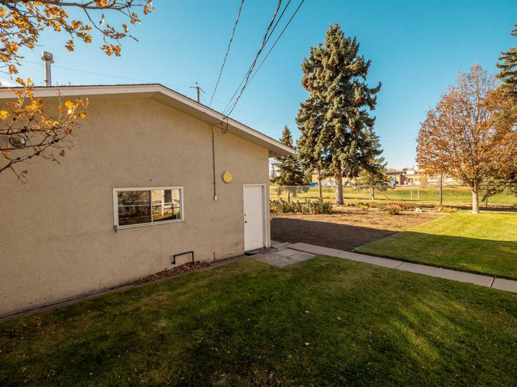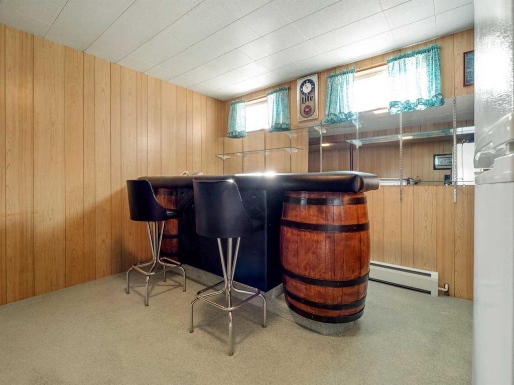 Sprawling Bungalow beside St. Joseph’s Elementary School. This spacious bungalow sits on an extra-large lot and offers both an attached single-car garage and a detached double garage — perfect for storage, hobbies, or extra parking. Inside, the main floor features a generous living room, dining area, and kitchen, along with three bedrooms and a full bathroom. Off the dining room, you’ll find a sunroom that connects directly to the single garage — ideal for enjoying morning coffee or extending your living space year-round. Downstairs, the basement includes a cozy family room with a built-in bar, two additional bedrooms, a den, full bathroom, laundry area, and a crawlspace for storage. Outside, the yard is beautifully landscaped with mature trees and greenery. A massive concrete veranda provides a great space for outdoor entertaining, and the backyard includes a garden area plus plenty of room to make it your own.