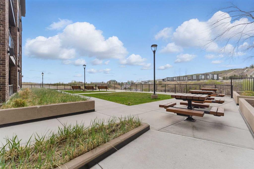 Welcome to this modern and stylish one-bedroom condo in the sought-after community of Greenwood/Greenbriar! Built in 2019, this beautifully maintained home offers 596 sq. ft. of contemporary living space with thoughtful design, upscale finishes, and an ideal location close to parks, shopping, and walking paths. Inside, you’ll find an open-concept layout with high ceilings, vinyl plank flooring, and large windows that fill the space with natural light. The kitchen is a showstopper, featuring sleek quartz countertops, a kitchen island with breakfast bar seating, stainless steel appliances, and ample storage with built-in features and crown molding. The spacious living and dining area offers the perfect setting for relaxing or entertaining, while the private west-facing balcony—with a BBQ gas line and courtyard views—extends your living space outdoors. The bedroom includes a generous walk-in closet, and the full 4-piece bathroom showcases modern finishes and tile flooring. Additional highlights include in-floor heating, central air conditioning, in-unit laundry, and elegant touches like track lighting and ceiling fans. This home comes with a titled tandem underground parking stall for 2 vehicles, an assigned storage locker, and access to an array of building amenities such as secure underground parking, a bike storage area, community gardens, gazebo, picnic and playground areas, and visitor parking. The building also offers elevator access and professional management for added peace of mind. Enjoy easy access to nearby parks, schools, and shopping, plus convenient proximity to major routes and the beautiful walking and biking paths that wind through this vibrant northwest Calgary neighbourhood. With low condo fees that include heat, water, insurance, snow removal, and more, this is urban living made simple. Perfect for first-time buyers, professionals, or investors—this condo combines comfort, style, and convenience in one exceptional package