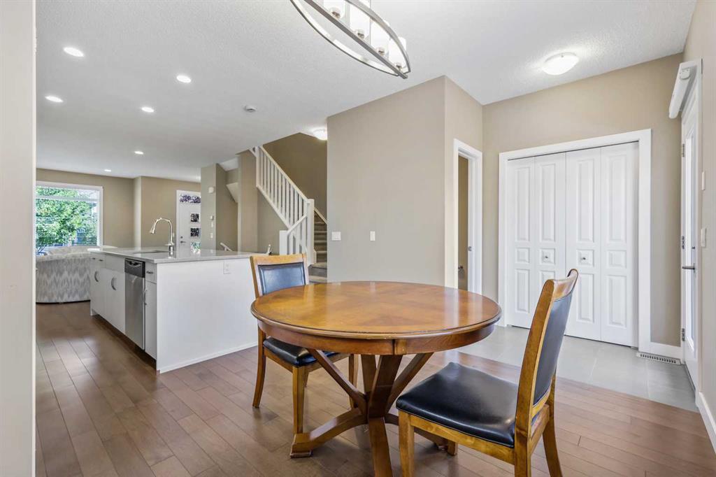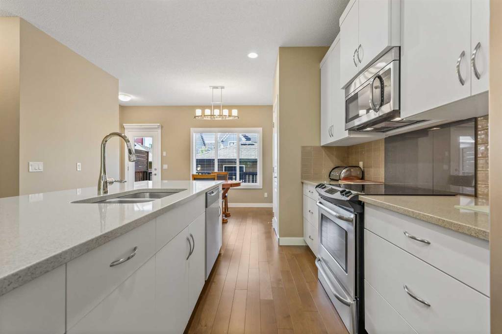 Move in Ready - Check and Compare!! Welcome to 1318 Walden Drive SE, a very clean, beautifully maintained, and thoughtfully designed home offering 1,516 sq ft of squeaky-clean, stylish living space in the peaceful, established end of Walden. Featuring a true double-detached garage (Drywalled, insulated, 40-amp panel, heated, 2x6 construction), 3 bedrooms, 2.5 bathrooms, and a partially finished basement, this home is perfect for growing families or savvy buyers looking for exceptional value. Step inside to a bright, uplifting interior featuring rich hardwood flooring and an open-concept main floor that flows effortlessly from room to room. The spacious front living room boasts oversized windows that let natural light pour in, while the gourmet kitchen dazzles with sleek white cabinetry, quartz countertops, a subway tile backsplash, stainless steel appliances, a large center island, and a walk-in pantry. The supersized dining area makes entertaining a breeze. It overlooks the sunny, south-facing, fully fenced backyard, complete with a 15' x 10' deck, two concrete patios, and low-maintenance landscaping—perfect for hosting or unwinding. Upstairs, you'll find three generous bedrooms, including the primary suite with a private 4-piece ensuite and a walk-in closet. A convenient upper laundry closet and an additional 4-piece main bath provide thoughtful function for family living. The partially finished basement features a spacious family room, a flex area, and a bathroom rough-in, offering even more potential for future development, guest space, or hobbies. The basement exterior walls are constructed with two-by-six framing and insulated with six inches of insulation. Additional upgrades include a white-painted staircase railing, James Hardie Board siding & stone detailing for curb appeal and durability. Underground irrigation in the front yard. Premium garage construction for Alberta winters. Quiet location within walking distance to green space and Township shopping development. This home offers both comfort and convenience, with quick access to Walden’s local amenities, Township in Legacy, Stoney Trail, and Macleod Trail, and is just minutes from Seton’s South Health Campus. Don't miss this chance to secure a turnkey property in a growing, well-connected community. Welcome home to 1318 Walden Drive SE—book your private showing today!