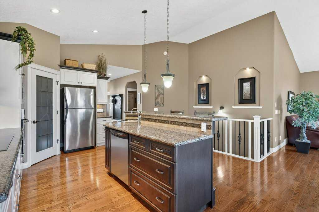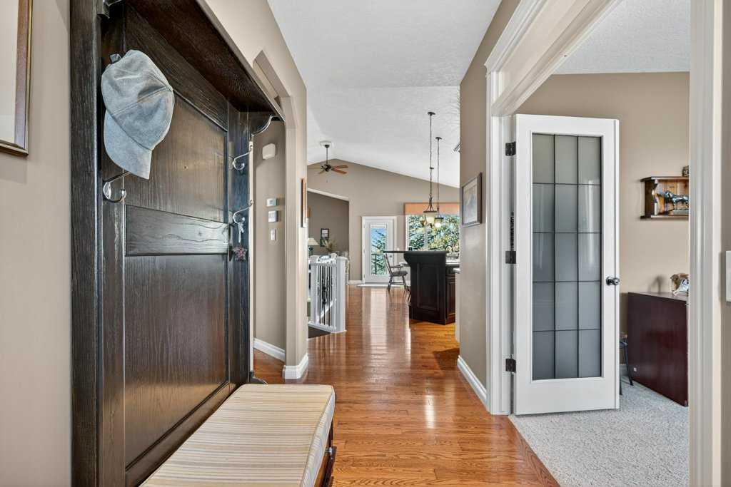 Welcome to your next home in Hillview Estates! This beautiful bungalow sits in one of the neighborhood’s most desirable locations, featuring a walkout basement that backs onto a quiet, peaceful canal. Step inside to an open-concept main floor that feels bright and airy, flowing seamlessly from the front door to large back windows overlooking your private, tree-lined yard. At the front of the home, an office with French doors and large windows offers an ideal workspace or can easily serve as a fourth bedroom. Hardwood floors flow throughout the kitchen and living area. The kitchen features two-tone cabinetry, stone countertops, and a spacious sit-up island, perfect for cooking or entertaining. The living room centers around a stone-clad fireplace, creating a warm, inviting atmosphere. The primary suite includes a walk-in closet and an ensuite bathroom with a shower and large soaking tub. Conveniently, located just outside the bedroom is the main-floor laundry room for easy access. Downstairs, the fully finished walkout basement offers a large recreation area with a second gas fireplace, two generous bedrooms and a full bathroom. One of the bedrooms features French doors that open directly onto the outdoor patio. Additional features include a heated, fully finished garage, a new roof (2025), and a built-in irrigation system. This home is truly move-in ready and waiting for its next owners. Homes like this don’t come up often in Hillview Estates, so book your showing today!