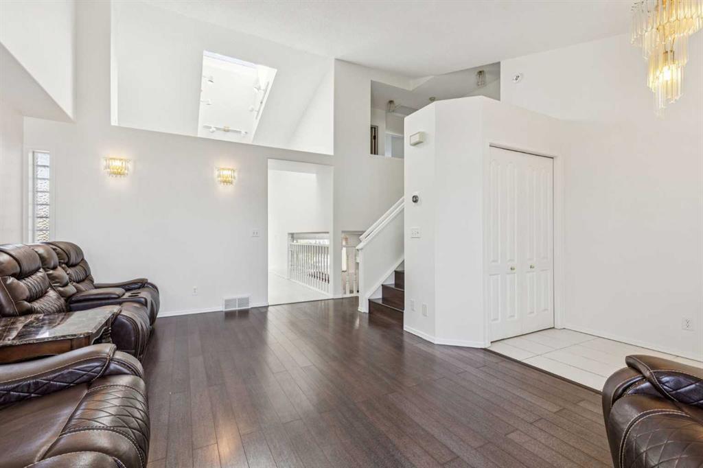 Welcome to this beautifully maintained 4-level split home, ideally situated directly across from a peaceful green space and park in the well-established community of Monterey Park. This stunning home offers 4 BEDROOMS, 3 FULL BATHROOMS, and a DOUBLE-ATTACHED GARAGE, providing ample space for families and guests. The main floor features VAULTED CEILINGS and SKYLIGHT, creating a bright and airy atmosphere. The open-concept living and dining areas flow seamlessly, making them perfect for hosting gatherings. The adjacent kitchen is equipped with STAINLESS-STEEL APPLIANCES, a pantry, ample cabinetry, and a cozy breakfast nook that overlooks the backyard. On the second level, you will find 3 comfortable bedrooms, including a MASTER BEDROOM with its own private ENSUITE. A second full bathroom on this level serves the remaining 2 bedrooms. The third level includes a large family room with a corner FIREPLACE, a 4th bedroom ideal for guests, and another full bathroom for added convenience. The fully finished basement adds even more functional living space, including a recreation room, a den or office, a laundry area, and a dedicated storage room. This home is entirely CARPET-FREE, featuring durable LAMINATE FLOORING THROUGHOUT, with ceramic tile in the kitchen and bathrooms. Recent updates include NEW SHINGLES INSTALLED in 2021, FRESH PROFESSIONAL INTERIOR PAINTING, and FULL SERVICING and CLEANING OF THE FURNACE and DUCT SYSTEM. A new, compliant Real Property Report (RPR) is also available. The backyard includes 2 MATURE APPLE TREES, adding charm and character to the outdoor space. This is a fantastic opportunity to own a home in a quiet, family-friendly neighbourhood close to parks/playgrounds, schools, and amenities. Don’t miss your chance to make this beautiful home yours.
