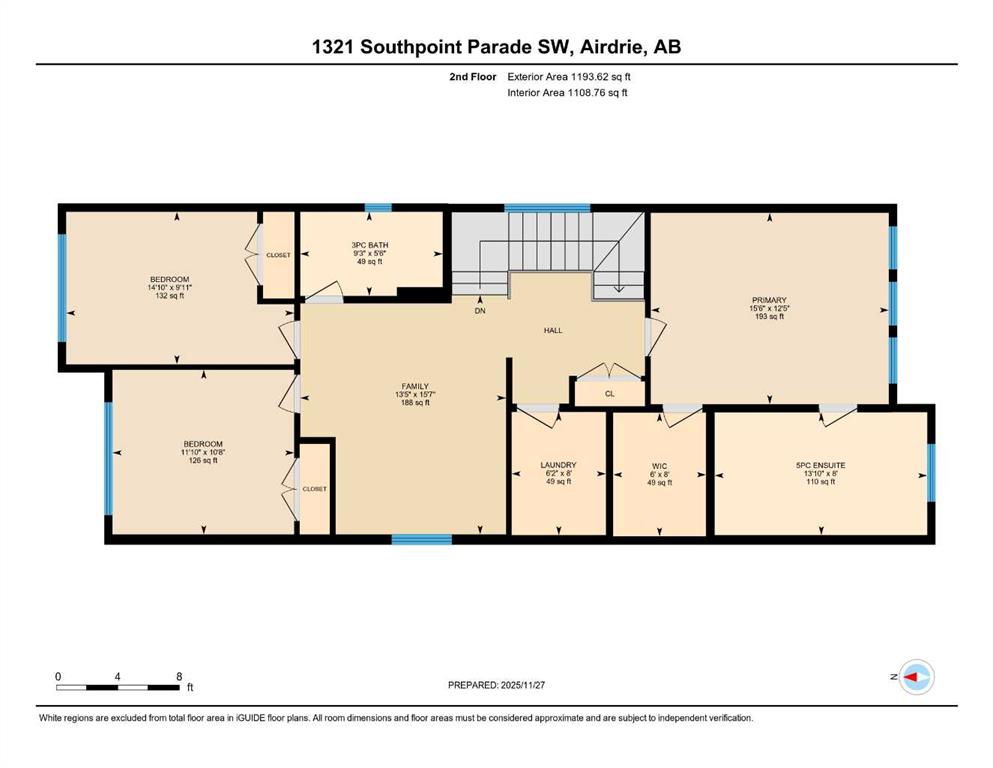 | 5pc Ensuite bath | 8`0" x 13`10" | Upper |