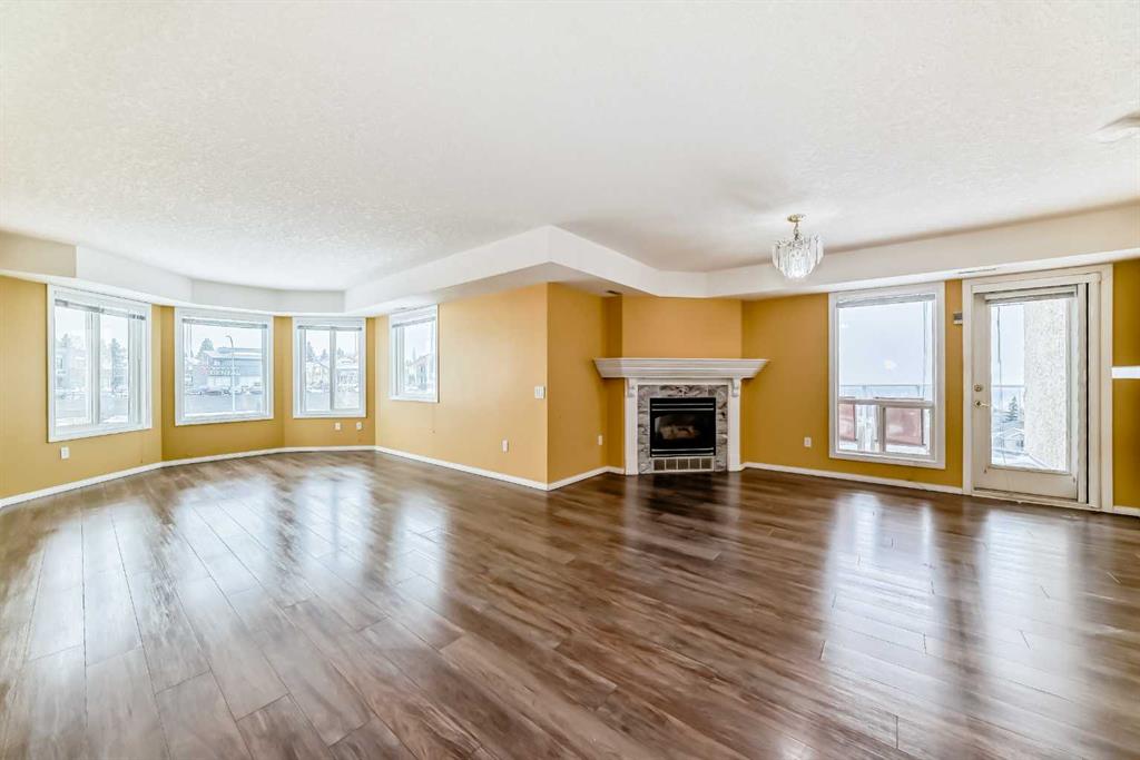 A Fantastic Condo in the desirable Dana Village, one of the nicest 55+ complexes in Calgary! Did you notice the fabulous view of Downtown? Open design that is bright, and easy to navigate, including a Full Kitchen with lots of Storage and an enclosed Pantry. The Master Bedroom has a Walk-In Closet and an Ensuite Bathroom with mobility assists already installed. The second bedroom is a good size with a 3-Piece bathroom nearby. The Laundry Room is spacious with full sized Washer & Dryer. Enjoy the gas fireplace on those winter days and the central Air Conditioning to keep you cool on the hot summer days! Heated, secure, assigned underground Parking Stall and a large Storage Unit that are both easily accessible from the Elevator. Super location with easy access to everything including the LRT, Sunterra Market, Westside Recreation Centre and lots of shopping, services, banking, restaurants, etc. Dana Village is professionally managed with entertainment areas, exercise, games, a large common kitchen for groups and a library too. This is a beautiful unit in a wonderful complex.